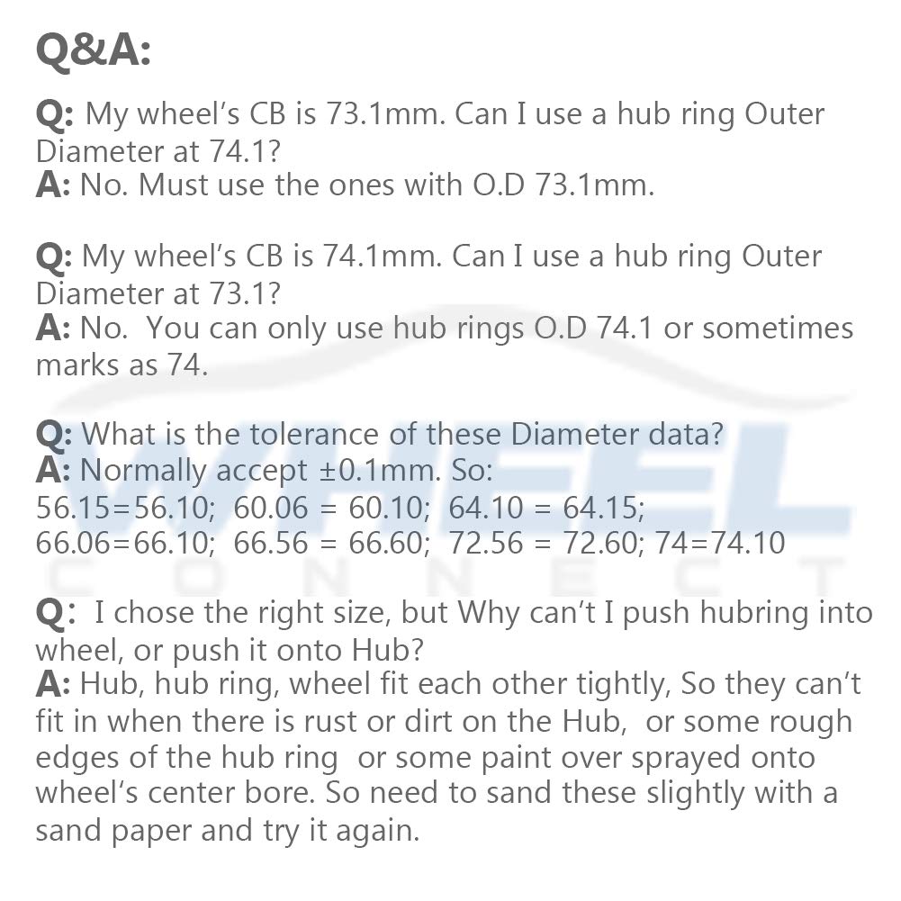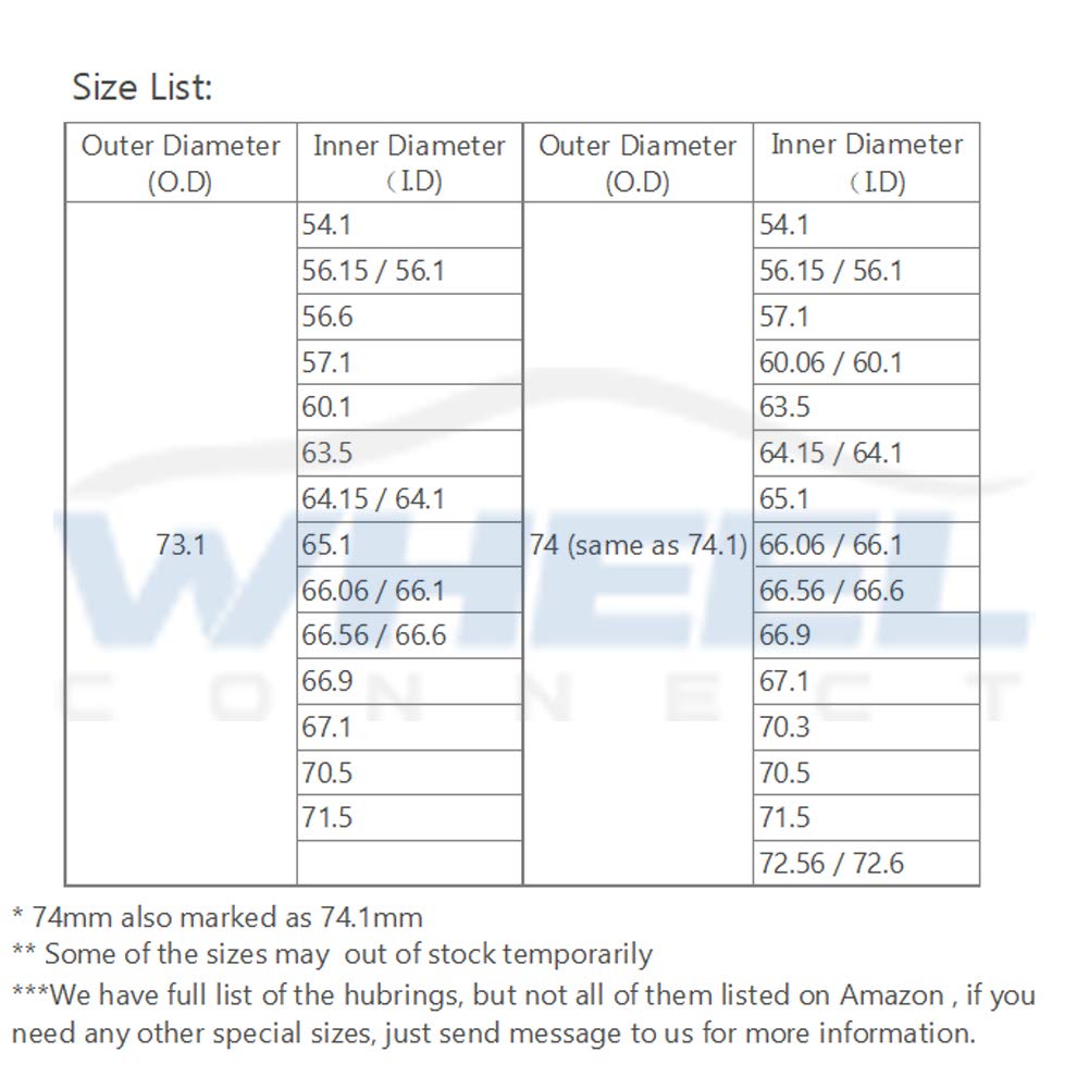 [FITMENT] Buyer is responsible for ordering the correct size. It is necessary that you measure your vehicle's hub and your wheel's center bore before purchasing. See the description section for additional information. Any question regarding fitment please contact us for professional advice.