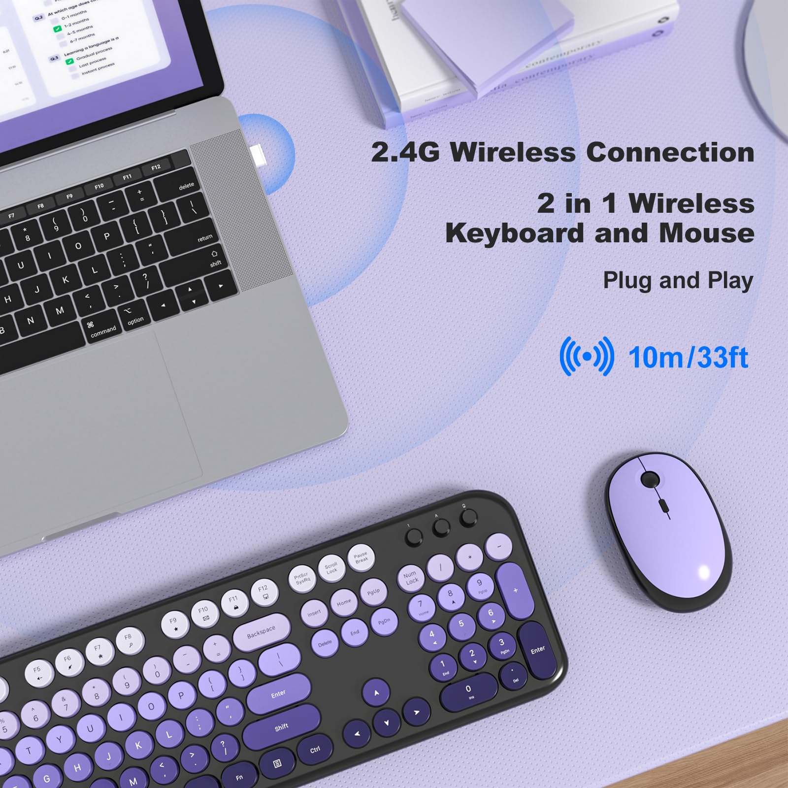 【Blackpurple-Gradient Wireless Keyboard and Mouse Set】most popular color of 2024, to attract more people's eyes, give you a different vision, enjoy a different keyboard experience, create a colorful desk, and be a pleasant mood for you!