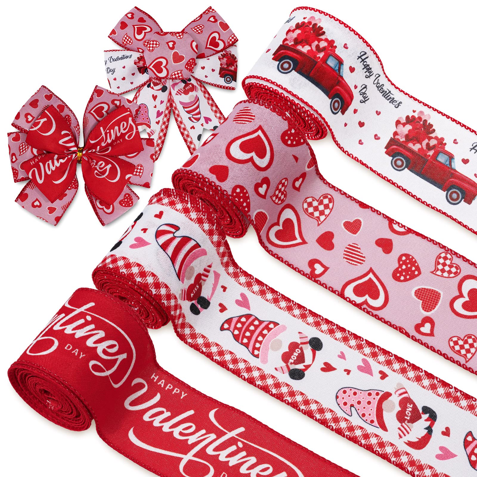 WHAT YOU WILL GET: 3 rolls of Valentine's Day ribbon are included in the package, festive colors and patterns making it pretty decoration for Valentine's Day themed party.