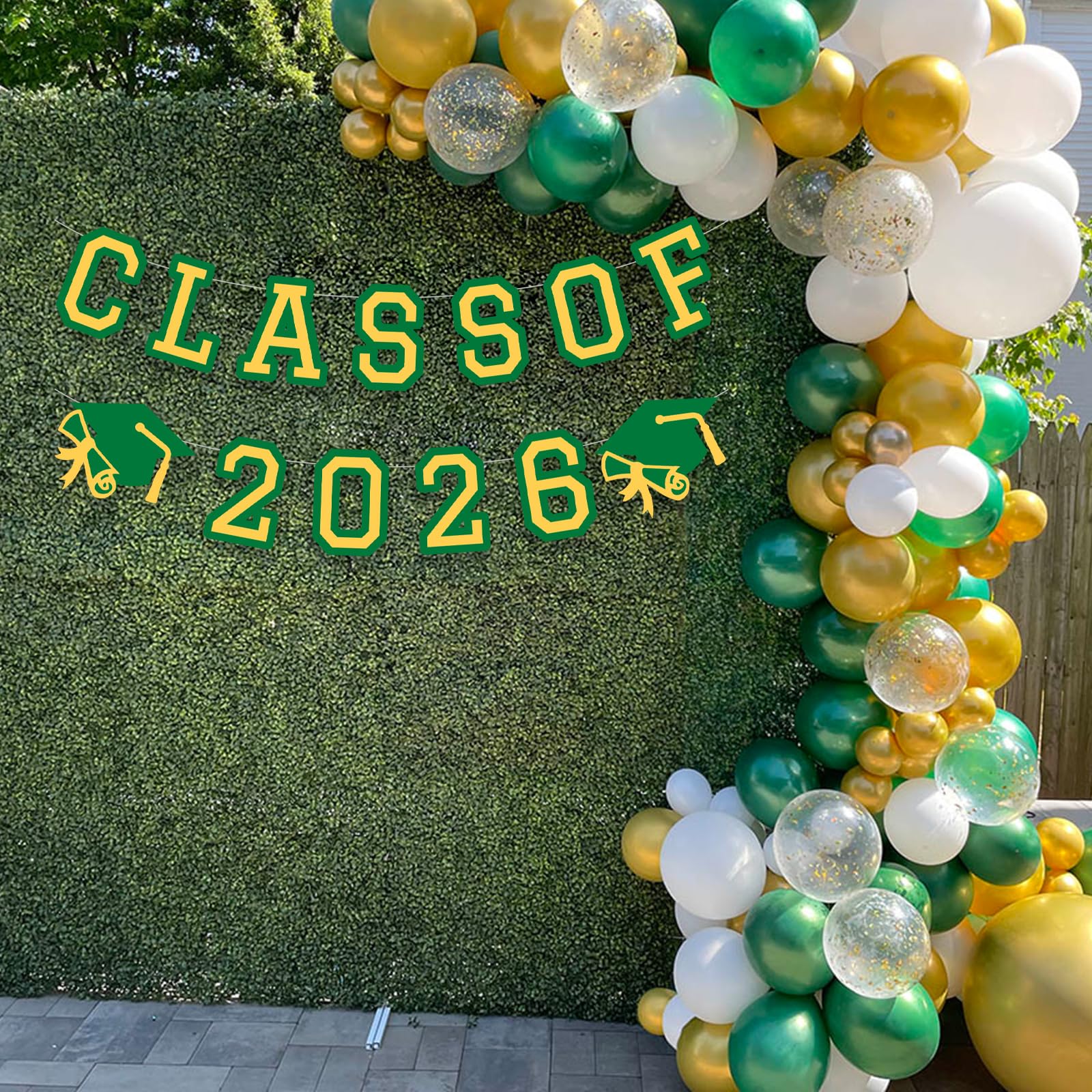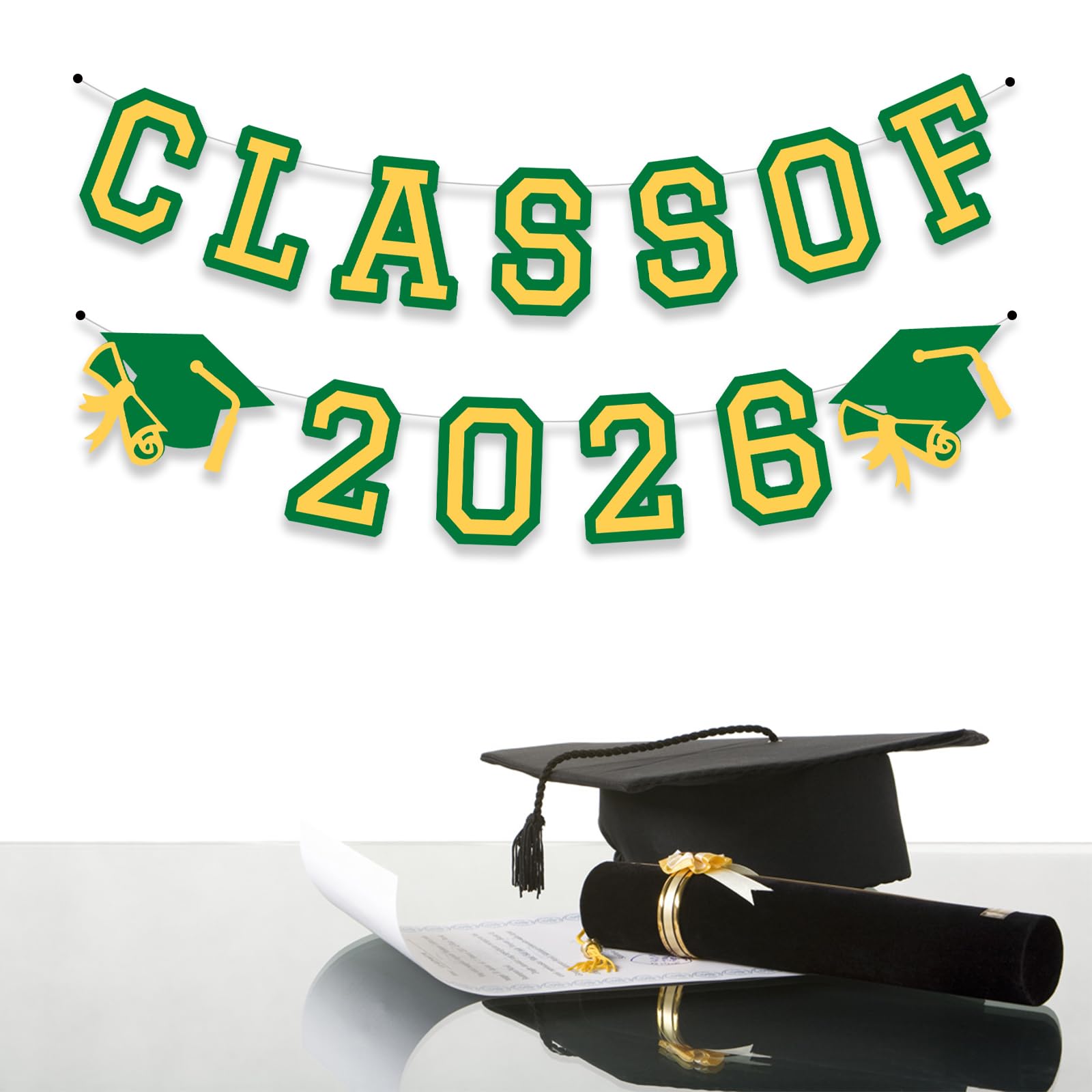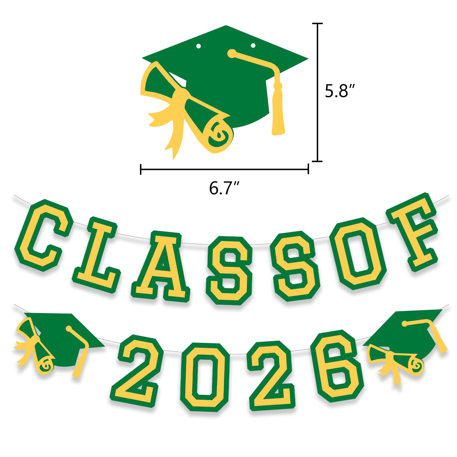 The green yellow graduation theme banner comes with ribbon, easy to assemble and hang. The grad party decoration sets include 1 green yellow class of 2026 banner