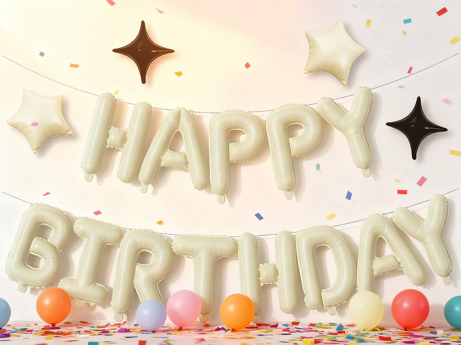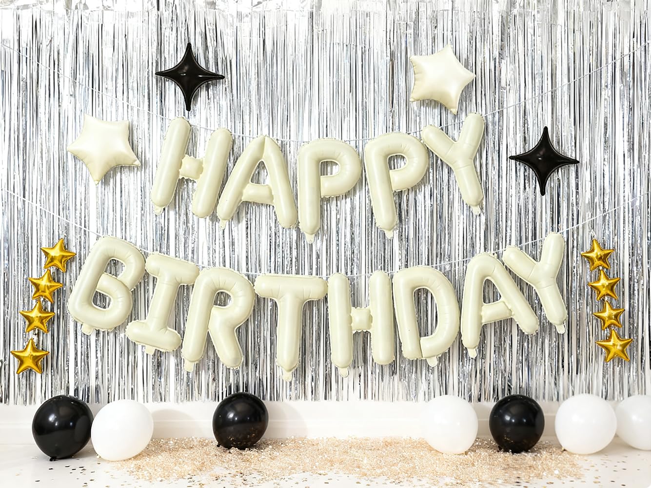 【Packaging content】 16 Inch “HAPPY BIRTHDAY” Aluminum Foil Balloon * 1, 10 Inch Five Pointed Star Balloon * 2, 10 Inch Four Pointed Star Balloon * 2,Ribbon *1,Straw *1. 【Material】 The Balloon is Made of High-Quality Aluminum Foil, Durable and Shiny. Keep Plump and Airtight For A Long Time. 【Easy to Use】 Use The Plastic Straw In The Packaging to Inflate The Balloon (Or Use an Inflation Pump, Which Needs To Be Configured By Oneself). After Inflation, You Can Use The Ribbon In The Packaging To Hang The Words "Happy Birthday" On Walls, Windows, Curtains, Ceilings, Backyard, Or Any Other Place You Think Will Look Good, Whether Indoors Or Outdoors. 【Applicable Scenarios and Scope】 Birthday Balloons Can Bring Eye-Catching Decorations To Your Birthday Party, Suitable For Birthday Parties Of All Ages Such As Children, Girls, Boys, Youth, Etc. 【After Sales】 For Any Issues With The Product, You Can Inform Us Via E-mail And We Will Provide You With The Most Satisfactory Service.