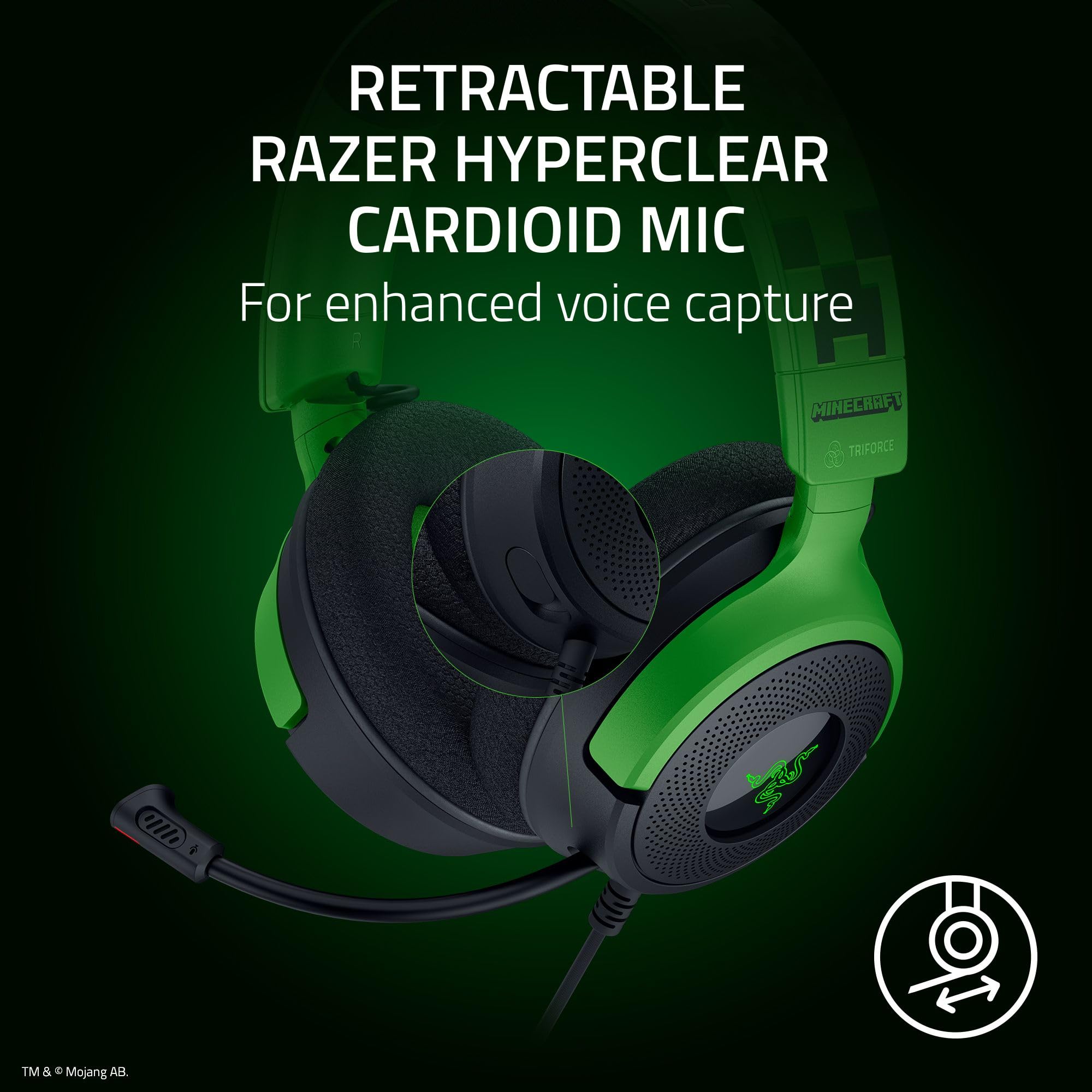 Dive into a vivid spectrum of sound with the Razer Kraken V4 X Minecraft Edition. Razer’s patented TriForce 40mm Drivers pushes out exceptional highs, mids and lows that doesn’t muddy, providing a more dynamic listening experience for deeper immersion. The Retractable Razer HyperClear Super Cardioid Microphone’s improved pickup pattern ensures more voice and less noise, while its retractable design allows for optimal positioning or protection when not in use. With advanced 7.1 Surround Sound, enjoy true-to-life acoustics that optimizes your game’s sound design so you can hear everything as if you were right in the middle of it all. Hybrid Fabric and Leatherette Memory Foam Ear Cushions provide all-day comfort and noise isolation, allowing you to game for hours in complete, uninterrupted immersion. A convertible USB Type C to A adapter offers multi-platform versatility to connect the headset to your favorite systems and devices like your PC, Mac, PlayStation, Nintendo Switch, Steam Deck, ROG Ally, and Smartphone. Powered by Razer Chroma RGB, enjoy access to 16.8 million colors and a suite of lighting effects, apply your preferred settings and watch it work seamlessly with over 300 games and 500 devices across more than 50 partners. Take your gaming to new heights of immersion with the Kraken V4 X.