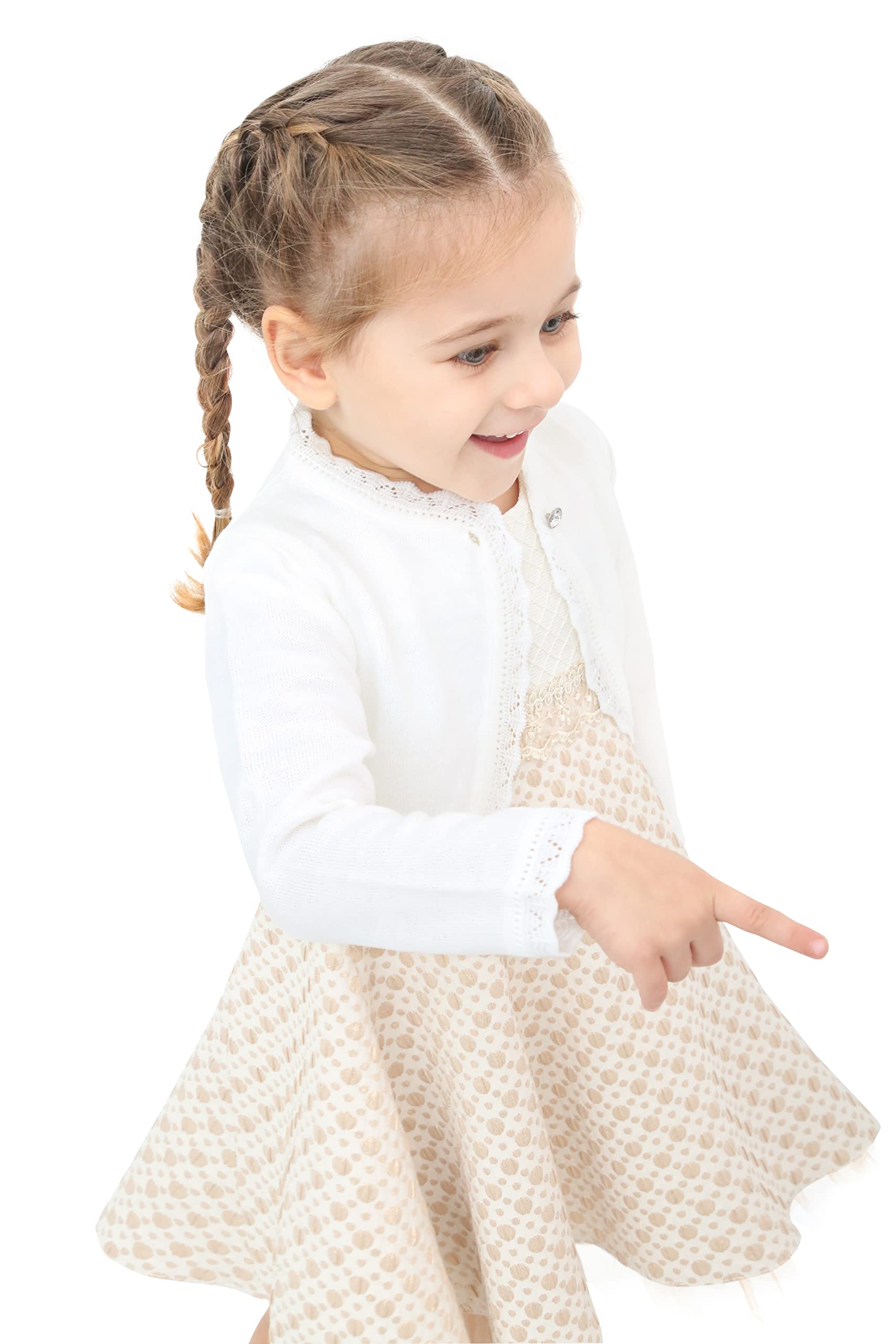 Long sleeve eyelet hem design bolero is perfect for over any dress