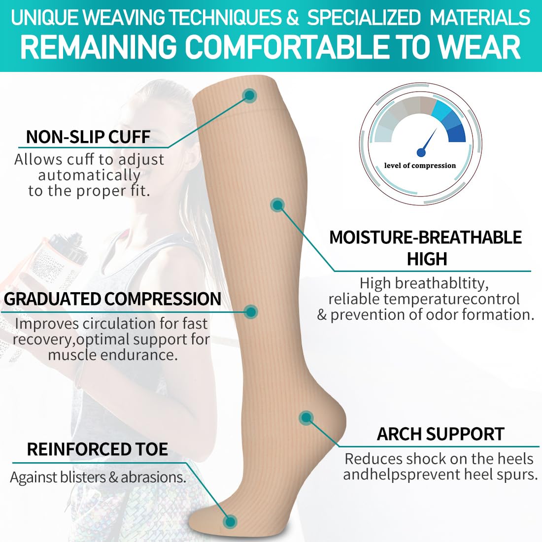 Ture Graduated Compression-Graduated compression is the most effective form of compression, and works differently than regular compression socks. Work by creating a 'pressure gradient' which helps to push oxygen-poor blood out of the feet and legs, and back to the heart. This improves circulation, boost energy levels, and relieves symptoms such as aches and pains, throbbing, swelling, blood pooling, provides the renewable and sustained energy and allows you to heal in the legs and feet.