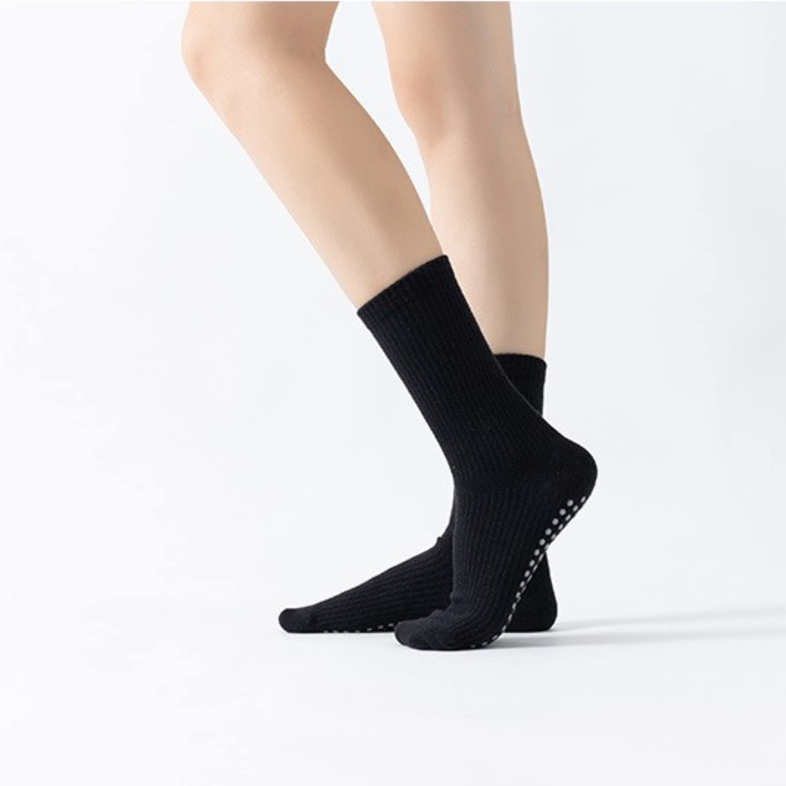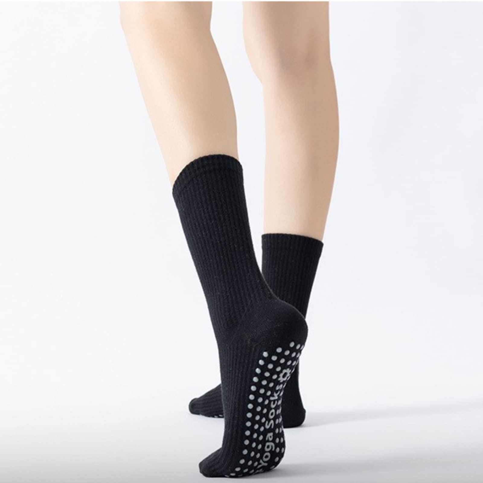 【Anti-Slide Grips】:The non-slip sticky grip patterns cover the entire heel and toe for maximum grip and traction. It improves stability and safety for all barefoot sports such as yoga, dance, Pilates and barre without worrying about slipping or sliding. This crew sock offers the perfect balance of support, cushioning and mobility.
