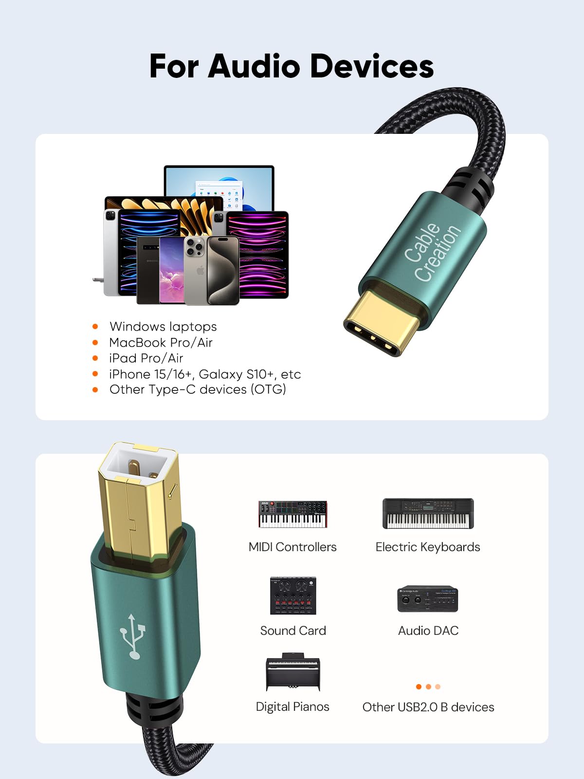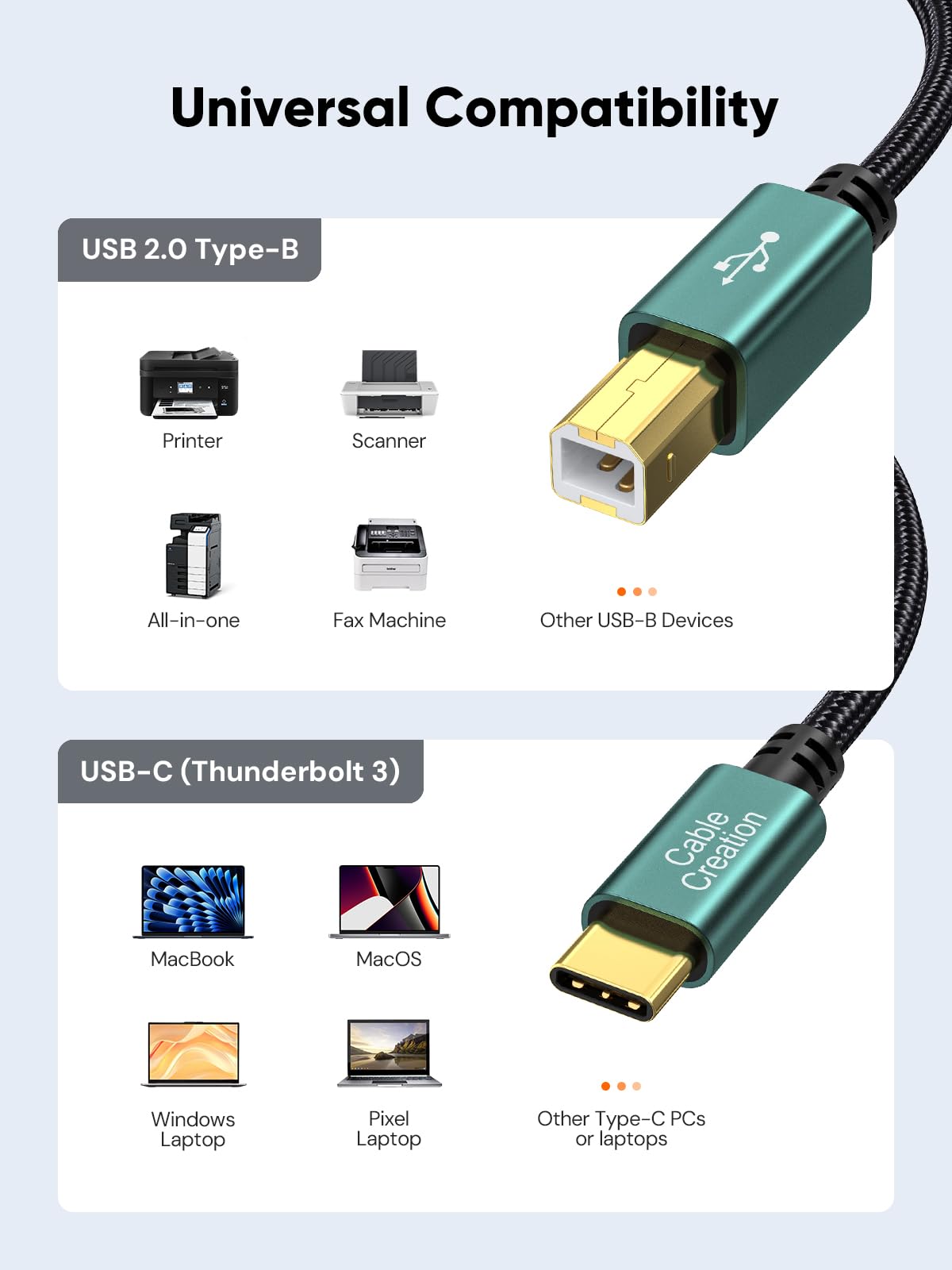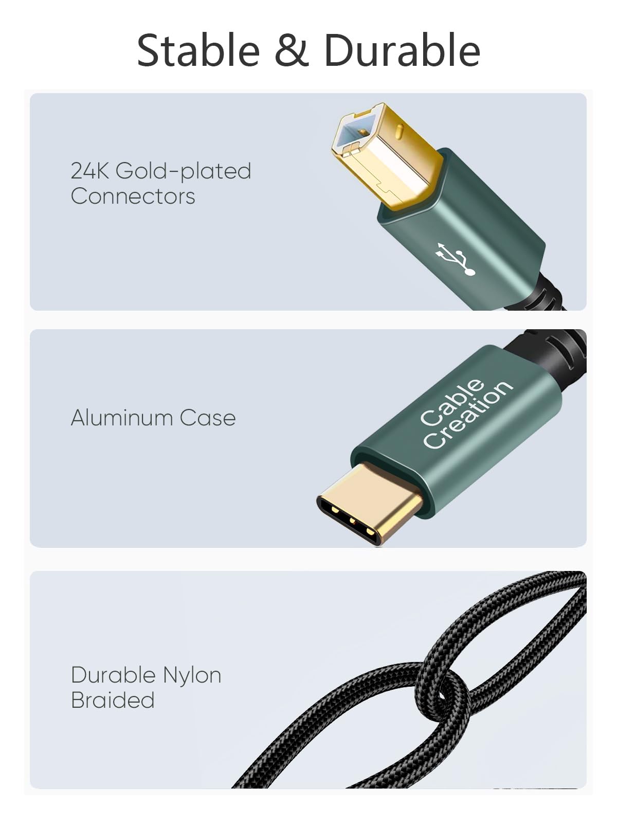 USB-C Printer Cable & MIDI Cable: CableCreation upgrade printer cable, designed to meet all your printing and audio needs. This versatile cable is widely used for printers, fax machines, copiers, all-in-one printers, and USB-B audio devices such as MIDI keyboards, BOSS guitar amps, DAC converters, and DJ controls. It is the perfect solution for homes, offices, schools, and businesses.