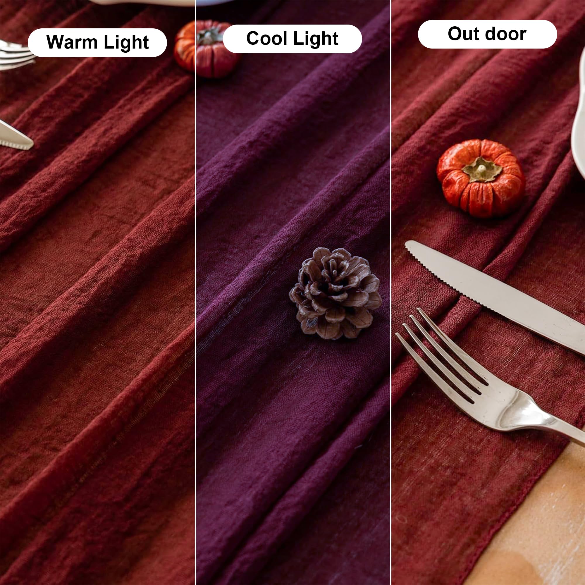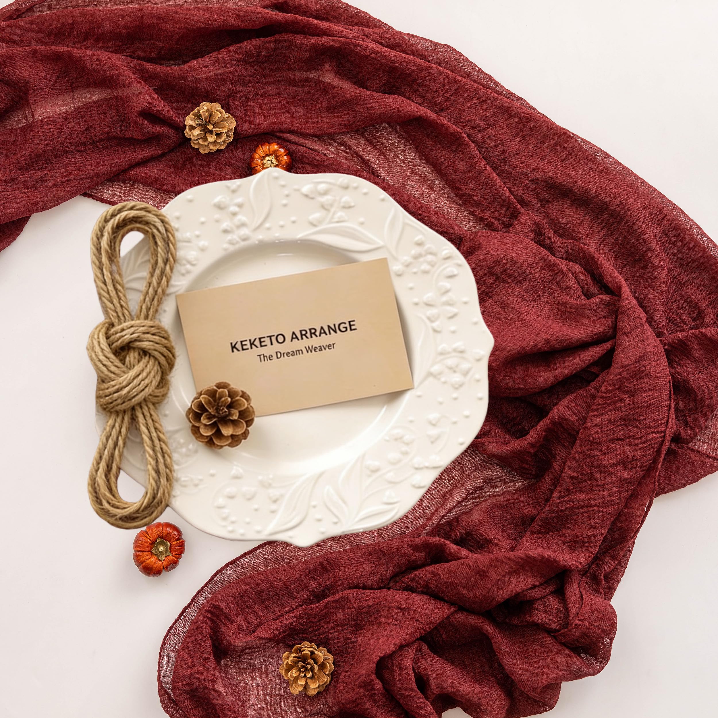 【Package Includes】1 Table runner (35 x 120 inches) and 1 natural jute rope(40 Inch), all neatly packed in a transparent plastic bag. This versatile runner is designed to fit most table types.