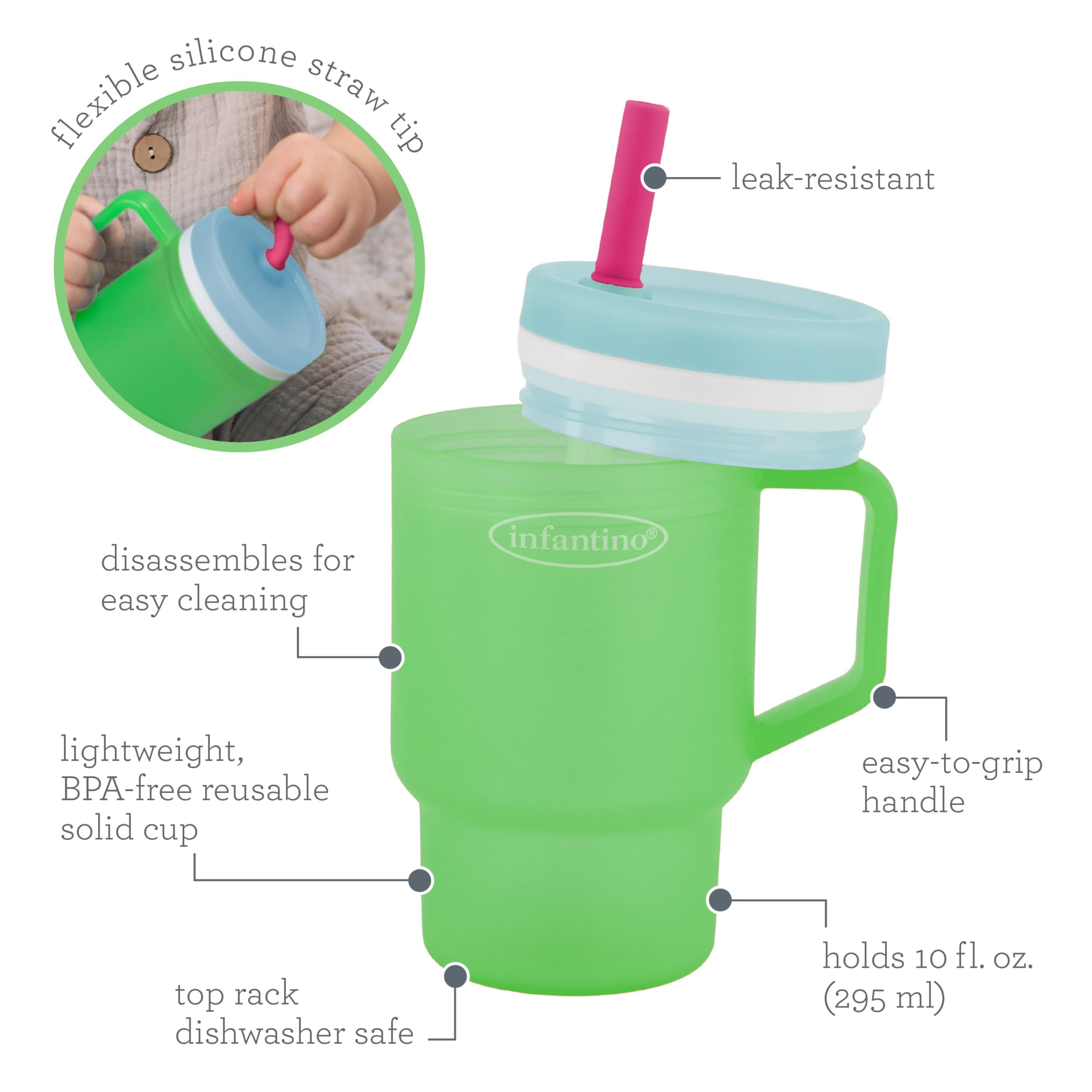 LEAK-RESISTANT STRAW DESIGN: The built-in silicone straw features a soft tip and hidden valve to control flow and minimize messes – even when flipped upside down. Plus, it’s no-pull for baby but removable for easy cleaning