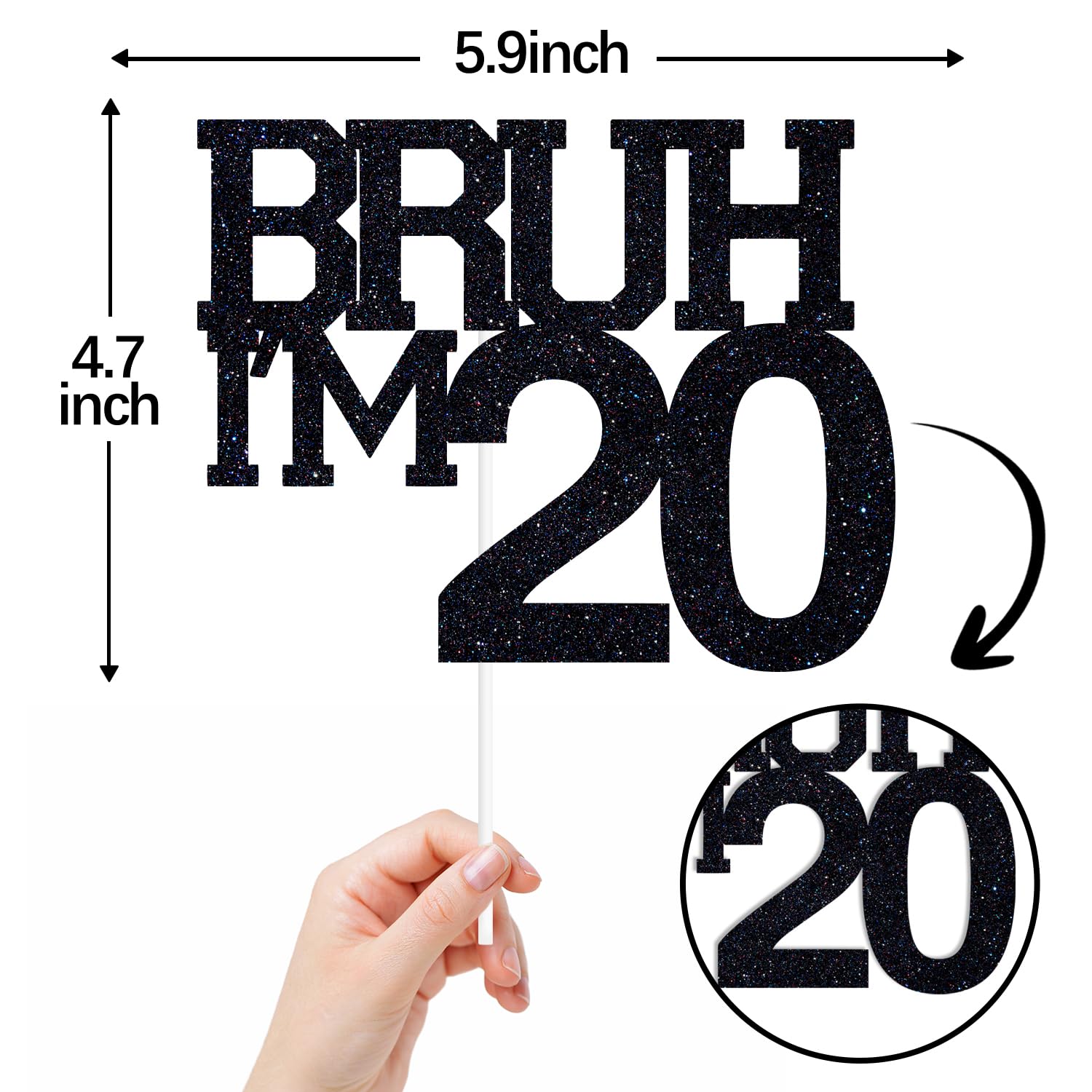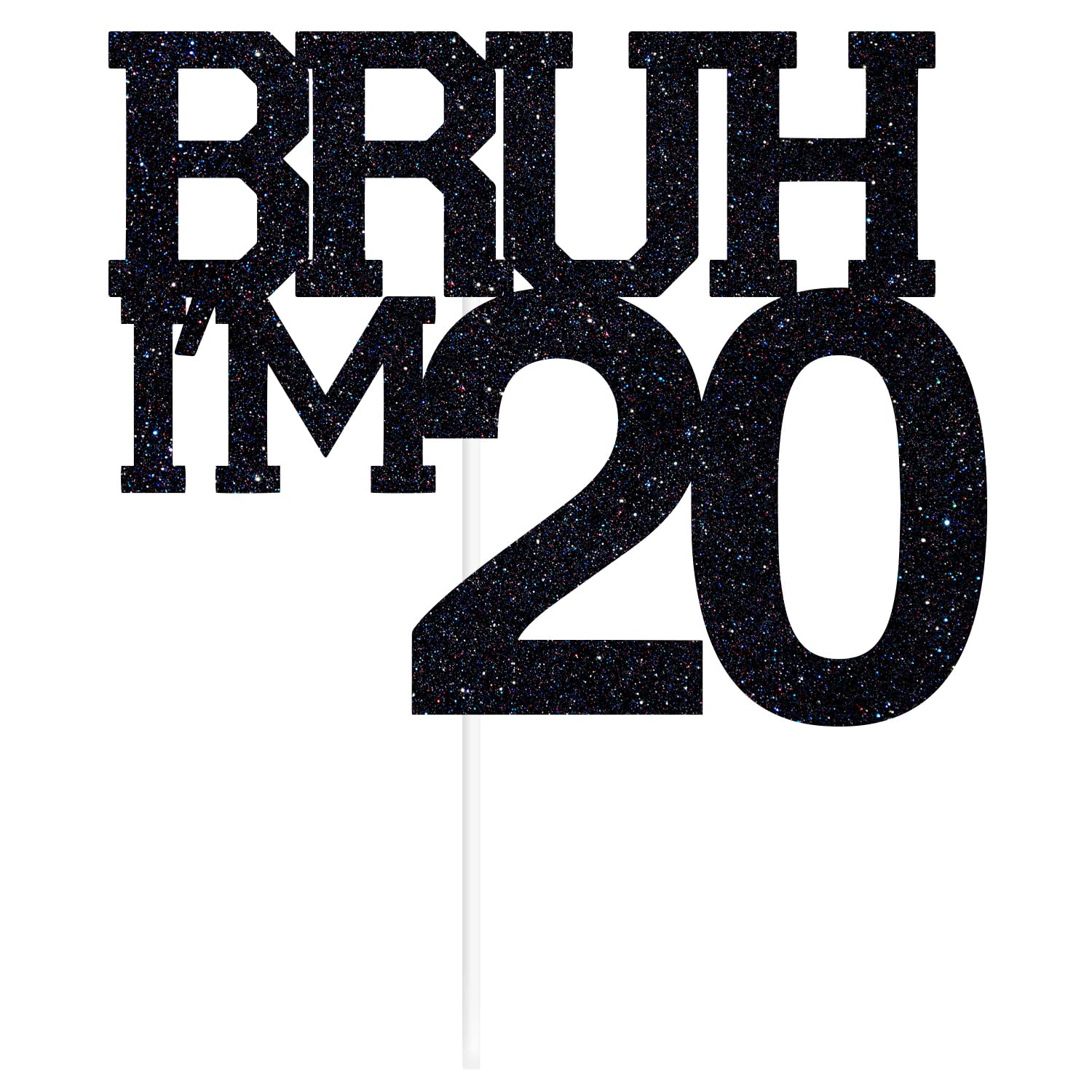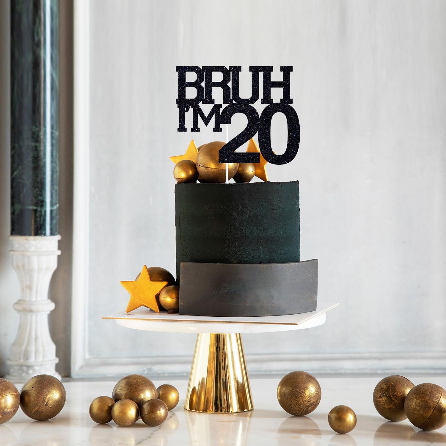 [20th Birthday Party Cake Topper]: Showcases trendy "Bruh I'm 20" text that resonates with today's youth and adds a humorous element to the celebration.