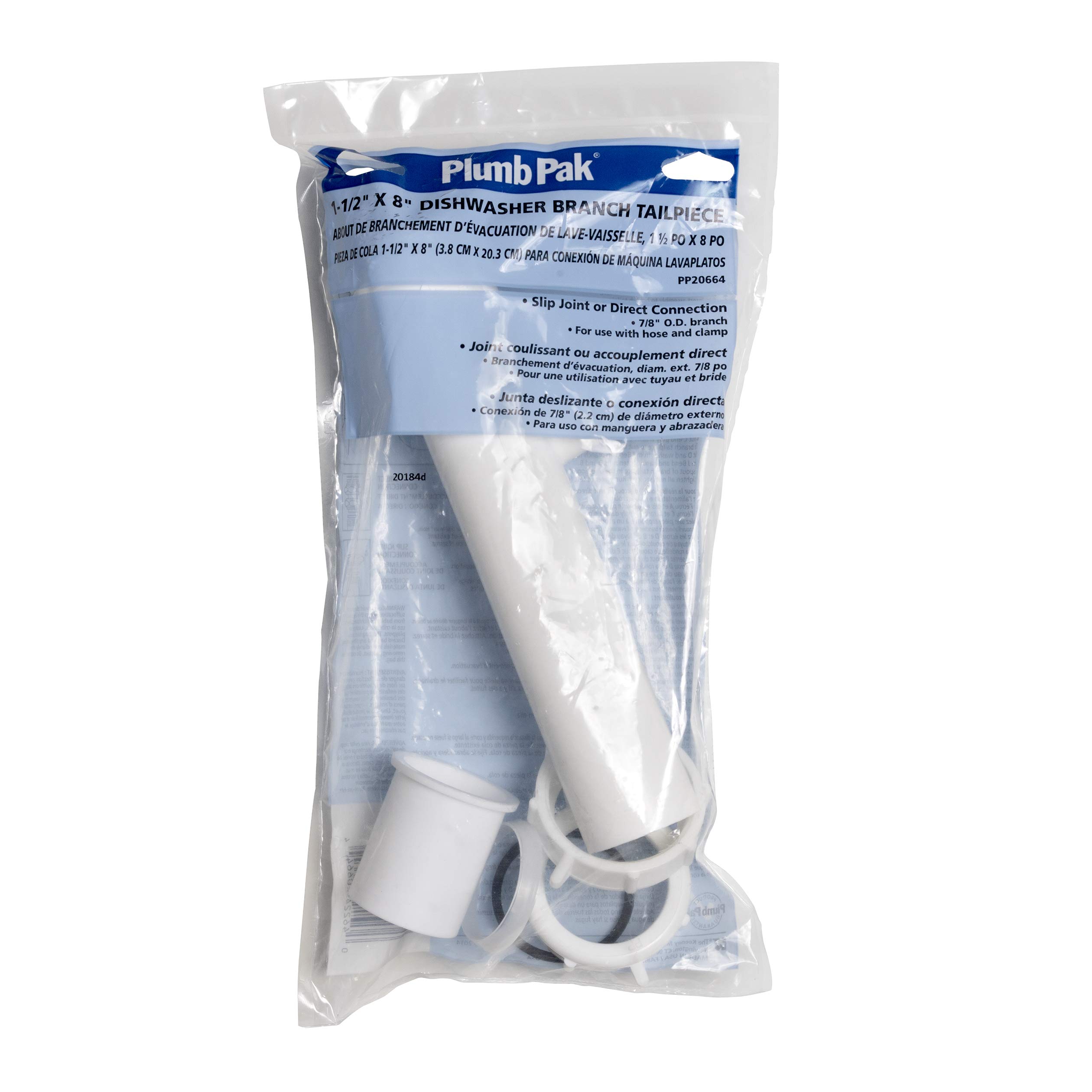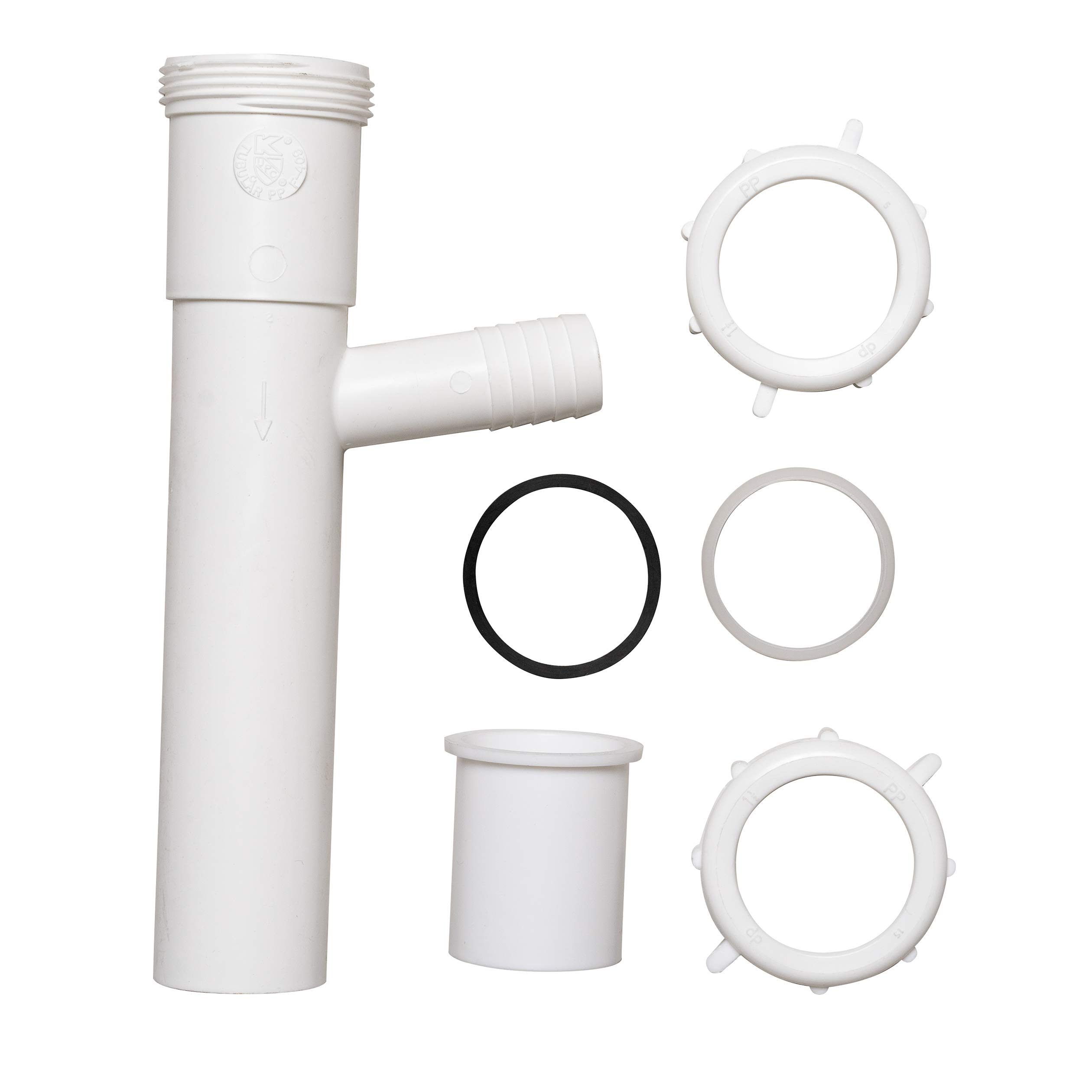 Keeney’s branch tailpiece is used under the kitchen sink when hooking up drains for a dishwasher. It is 8-in. long with a 1. 5-in. inlet and 7/8-in. O. D. branch that connects to the dishwasher with slip joint or direct connect. The durable white polypropylene construction allows for long-term use. You can install with confidence knowing Keeney stands by its products with a Limited .