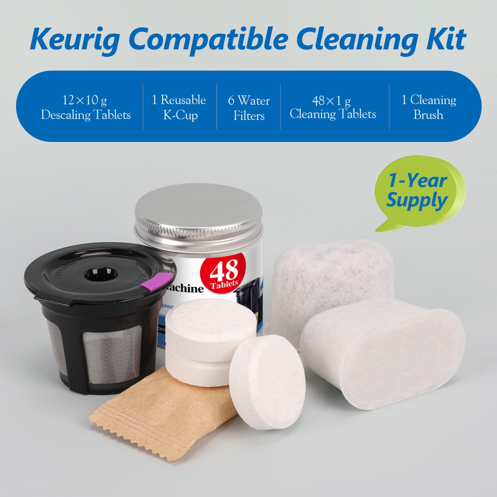 Reusable Rinse Pods: reduces flavor carry-over between brews,water filter chlorine, calcium, and other impurities from your water to enhance beverage taste and quality.Descaling solution use every 3 months to clean and remove mineral deposits that can built up inside your coffee maker