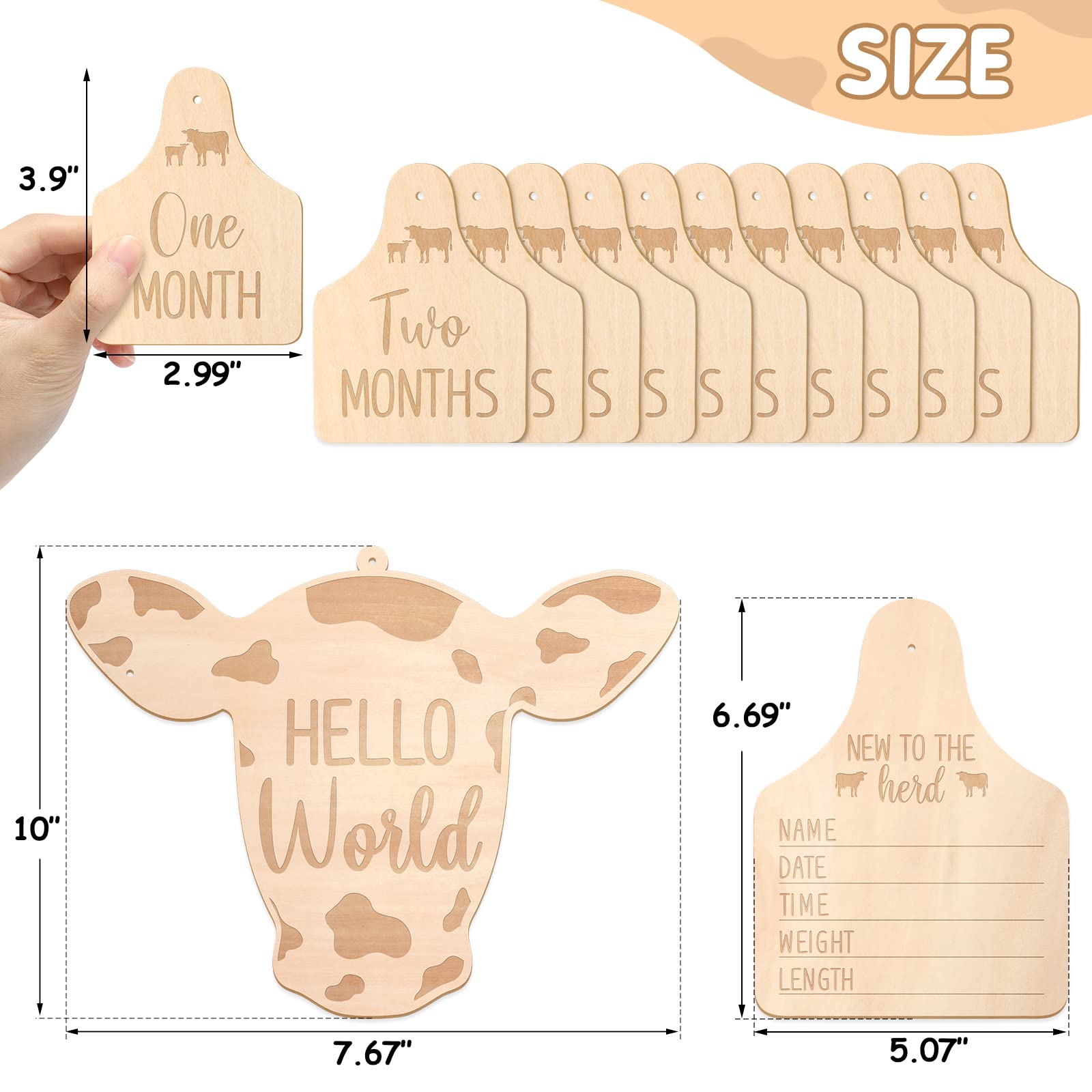 Hangable Nursery Decoration :Each small monthly cards measure 3" long by 4" high, information card measures 5" long and 6.7" high, cow head measures 10" long and 7.7" high, the cards can be hung on the cow's ears, not only can be used as a growing photo prop and would be a perfect addition to the nursery .