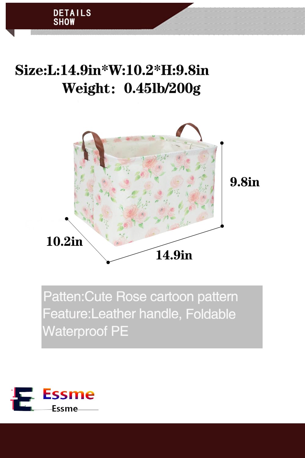 DIMENSIONS:14.9(Length) x 10.2 (Width)x 9.8(Height) inches, perfect rectangle rose baskets for nursery organizer