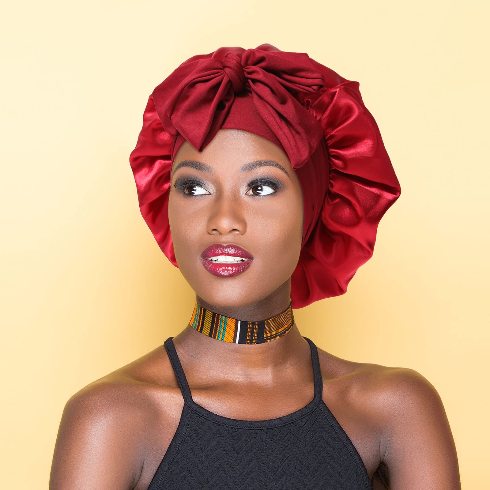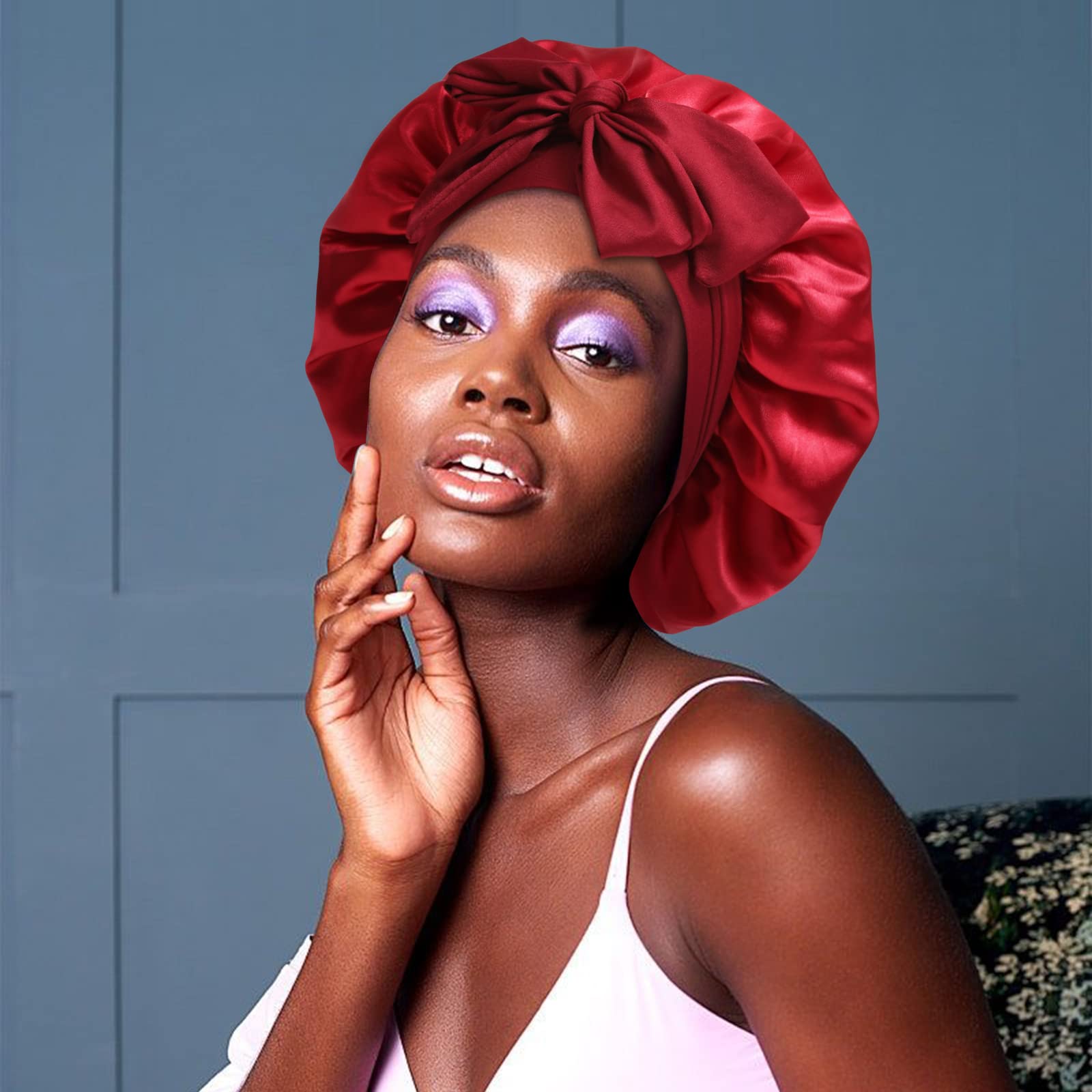 THE WIDE SOFT ELASTIC BAND MAKES COMFORTABLE ON THE HEAD - The tie band of the Satin hair bonnet measures 56 cm/22 in long and approximately 6 cm/2⅖in wide. It's soft enough and comfortable on your head and makes you sleep soundly. It can be adjustable to keep this bonnet in place to help protect your hair and reduce frizz, even if you're an active sleeper who tosses and turns a lot