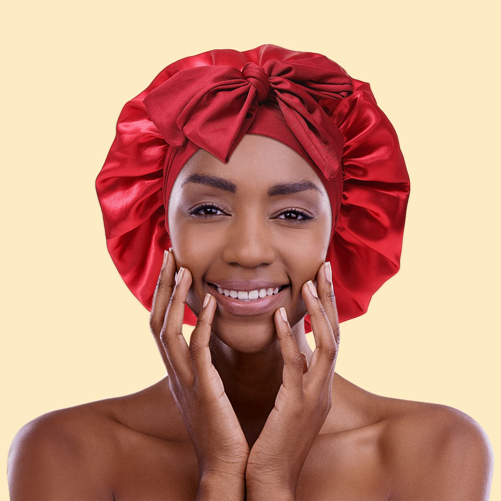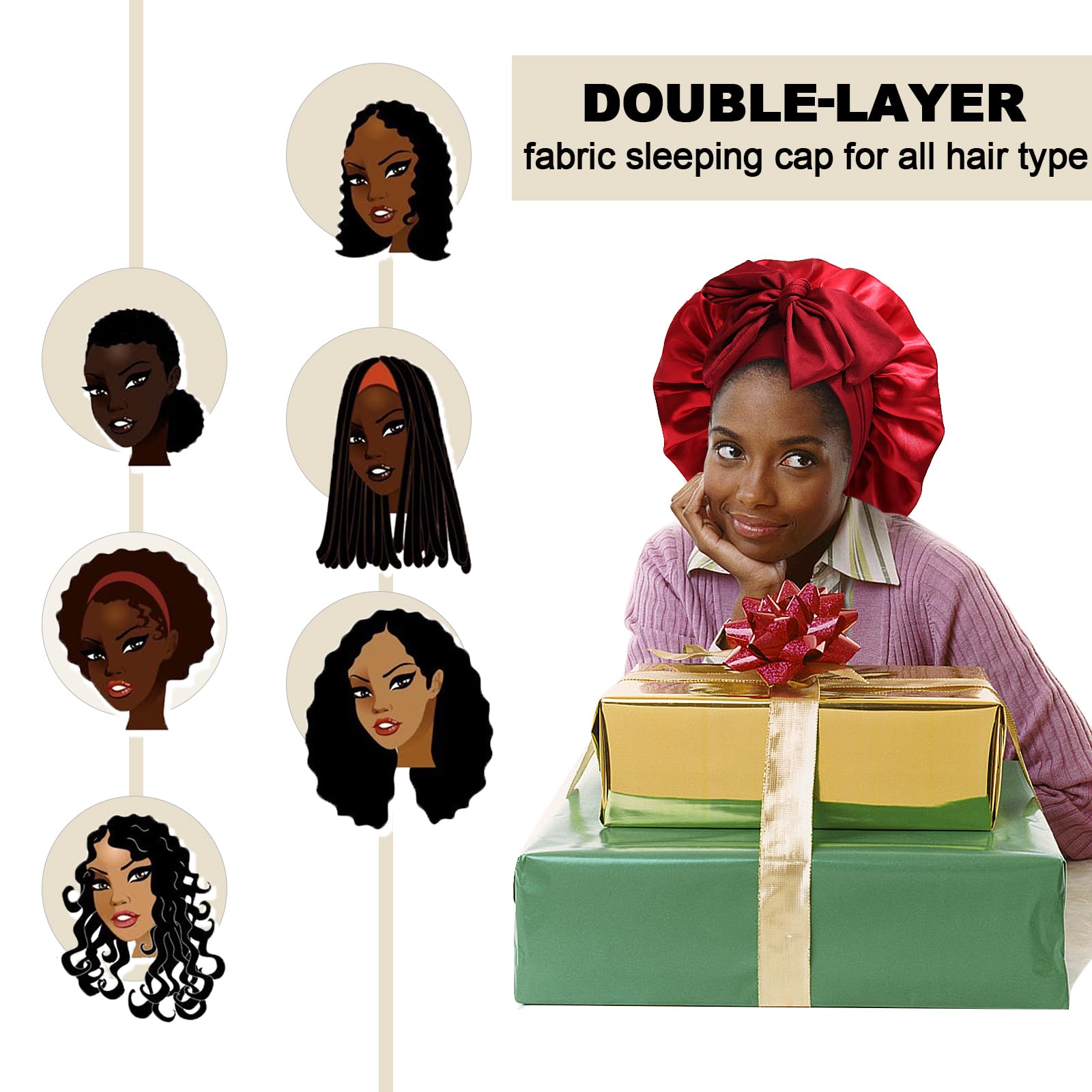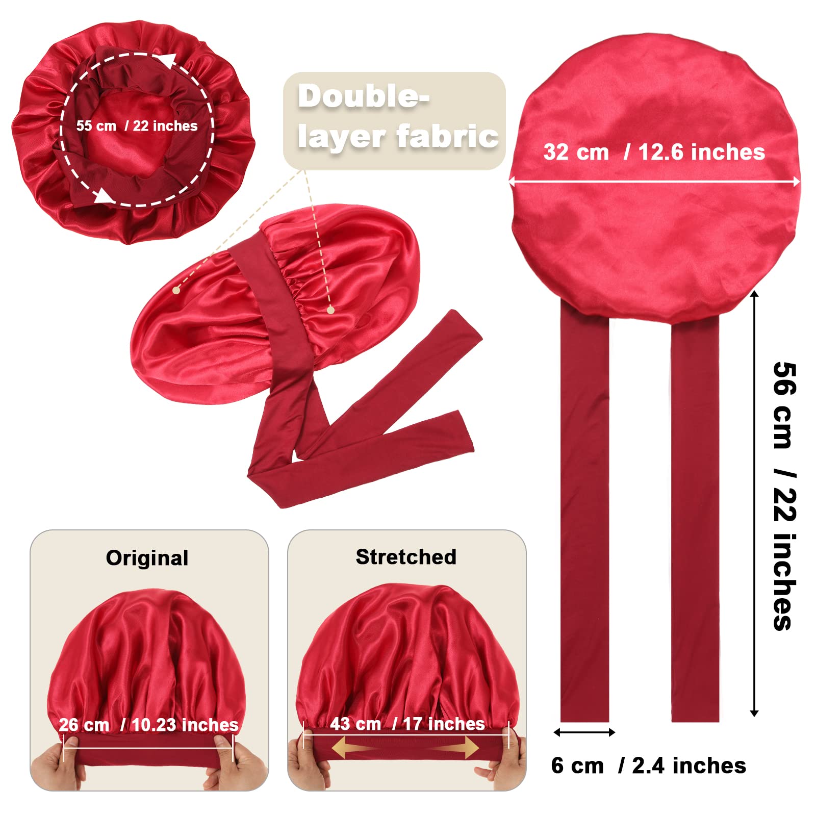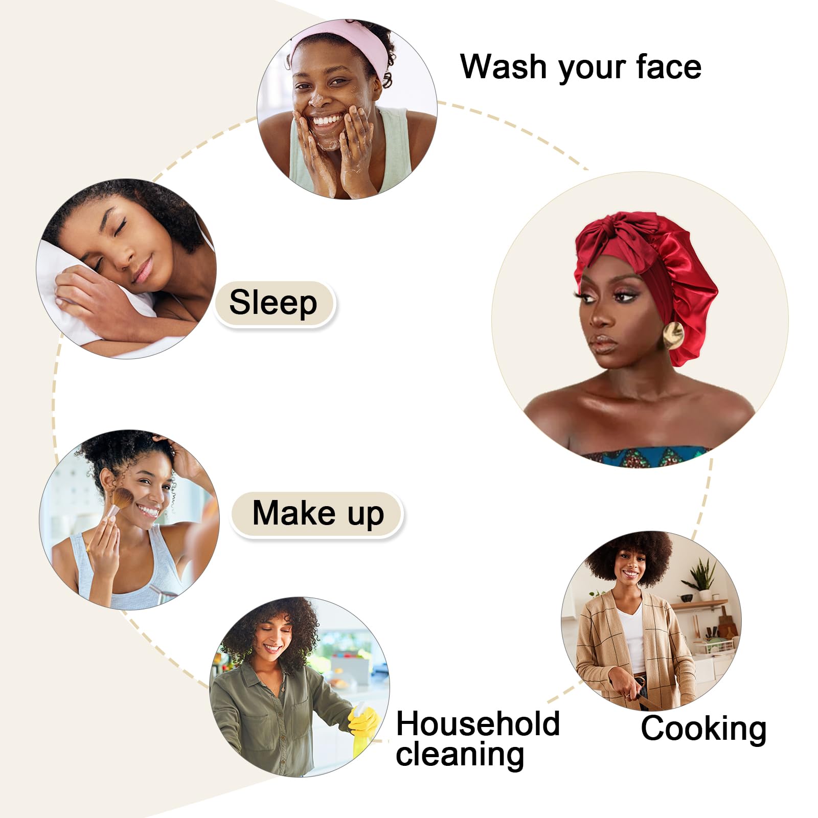 LARGE SLEEP CAPS MAKE YOUR LIFE EASY - A large satin hair bonnet wraps all the hair and keeps you from washing, making up, working, doing housework, and cooking without mess. A double-layer satin nightcap can keep you warmer in winter