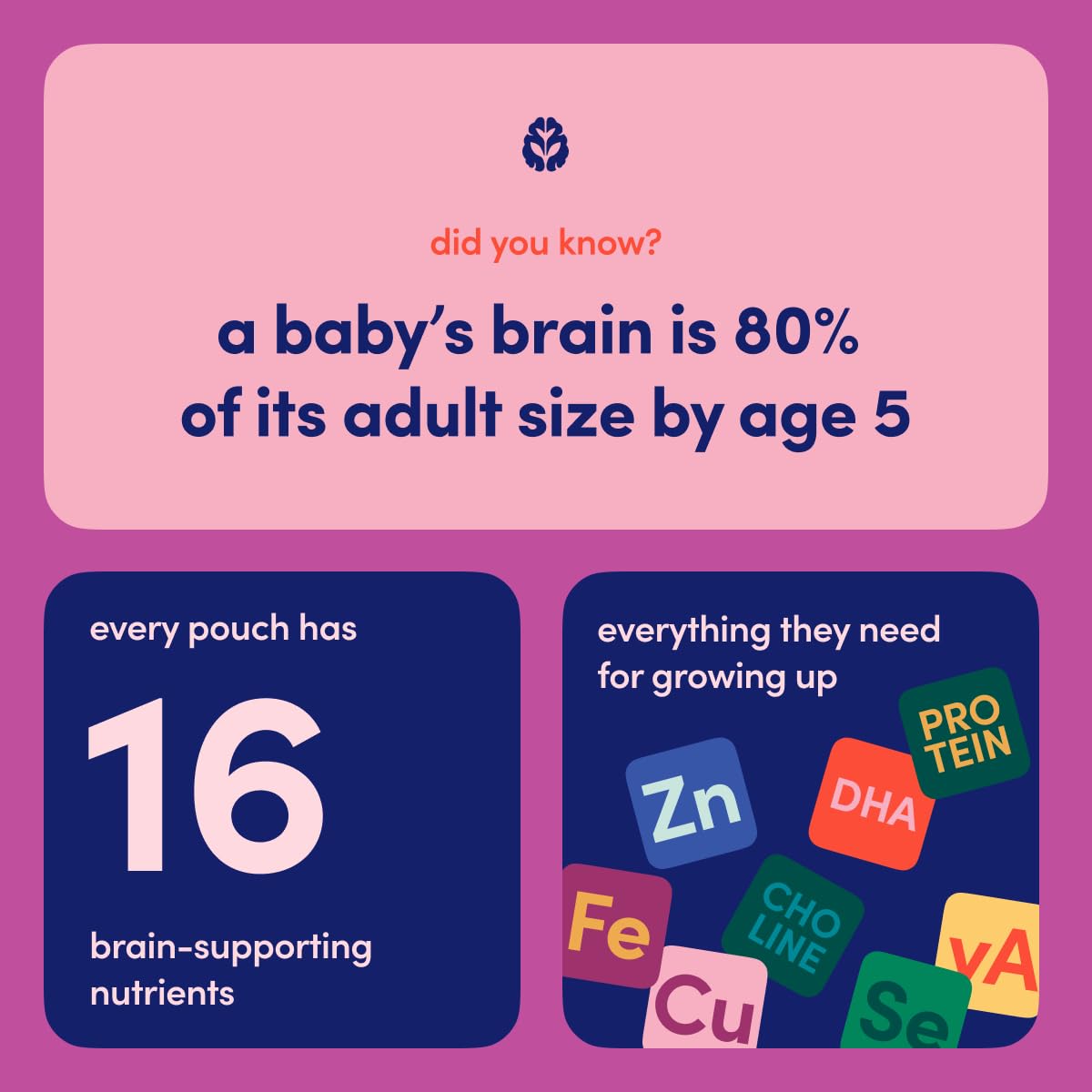 16 BRAIN-SUPPORTING NUTRIENTS β Baby smoothie pouches with vitamin A, iron & vitamin D to fuel healthy brain and body development