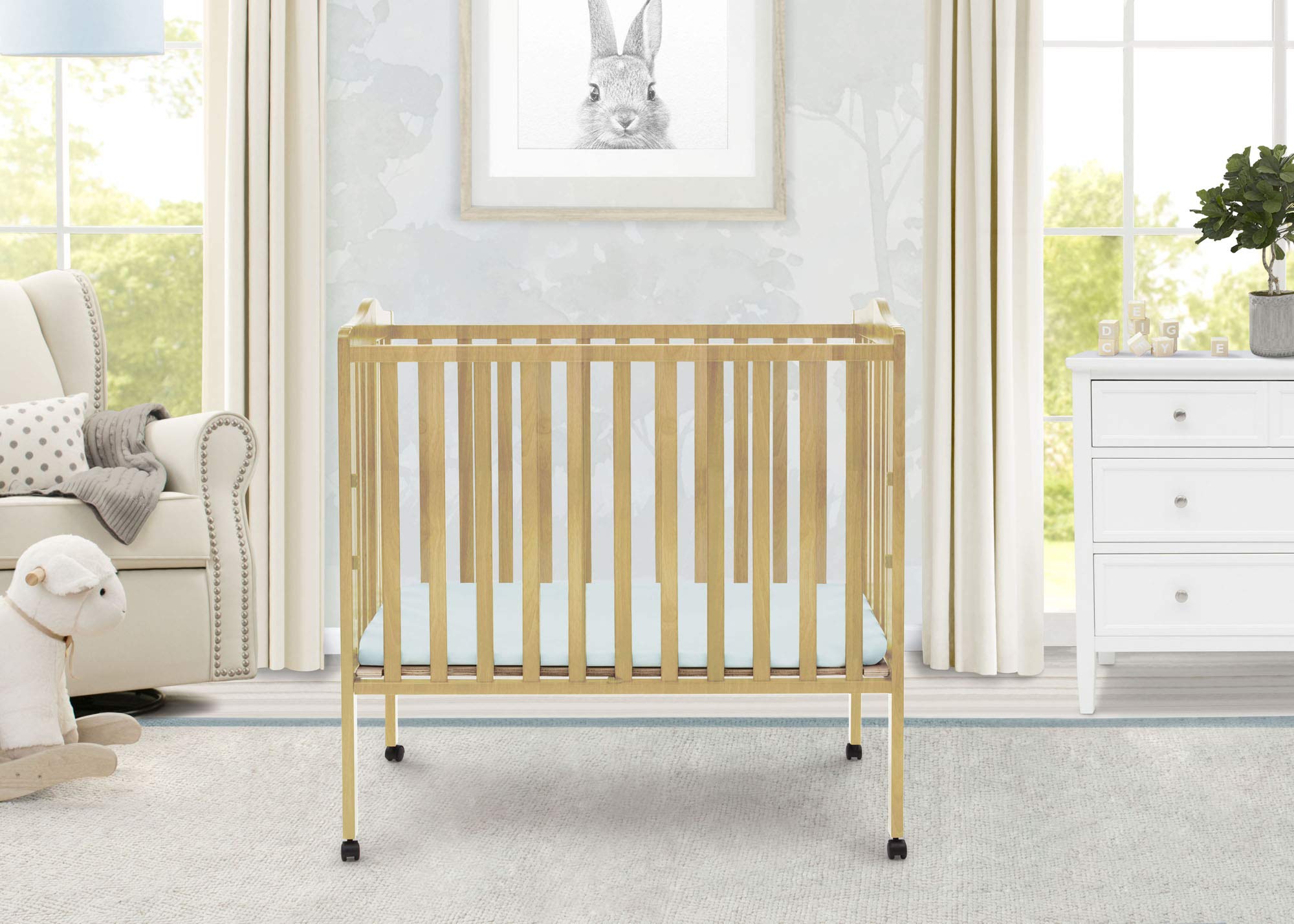Delta Children Folding Portable Mini Baby Crib with 1.5-inch Mattress - Greenguard Gold Certified, Natural
