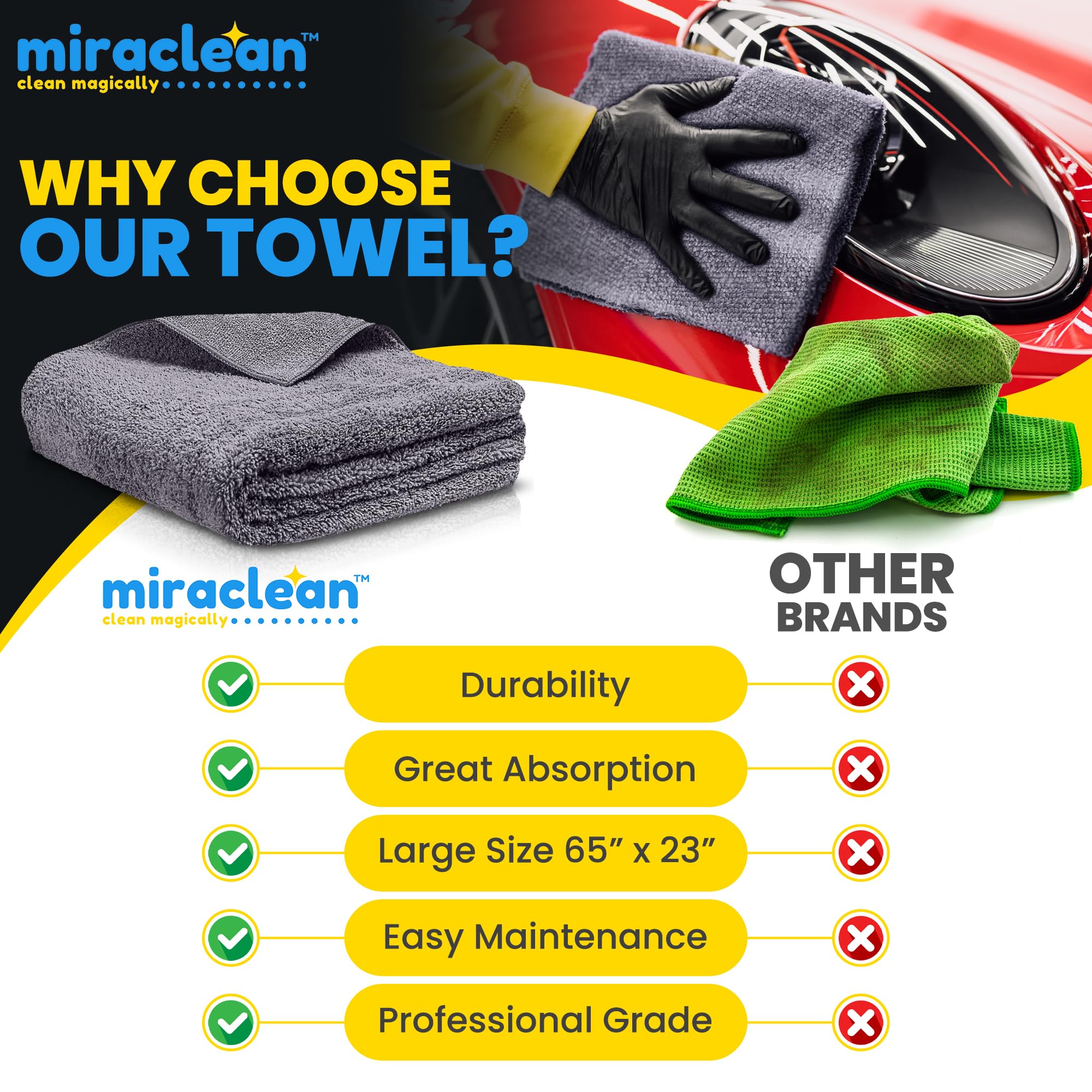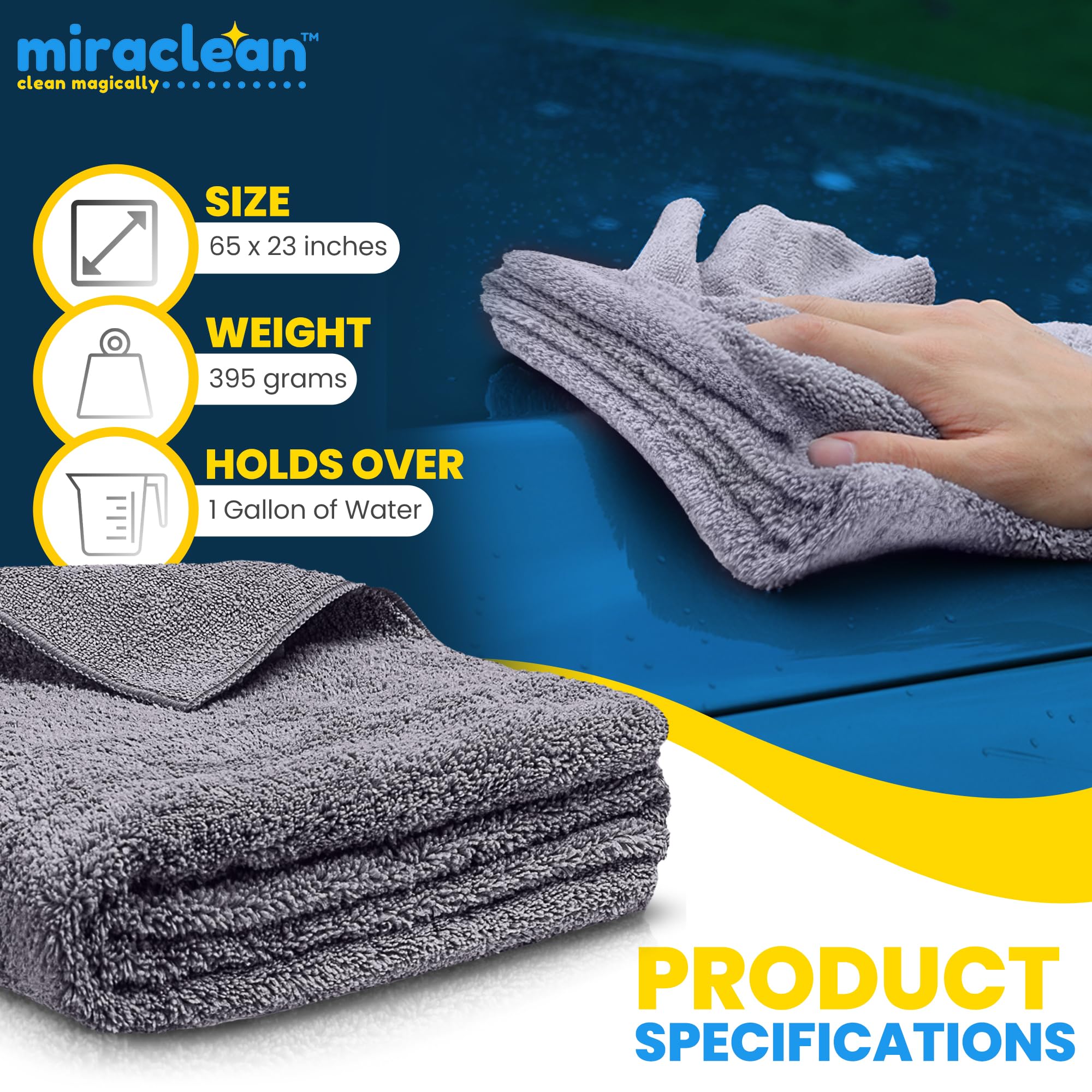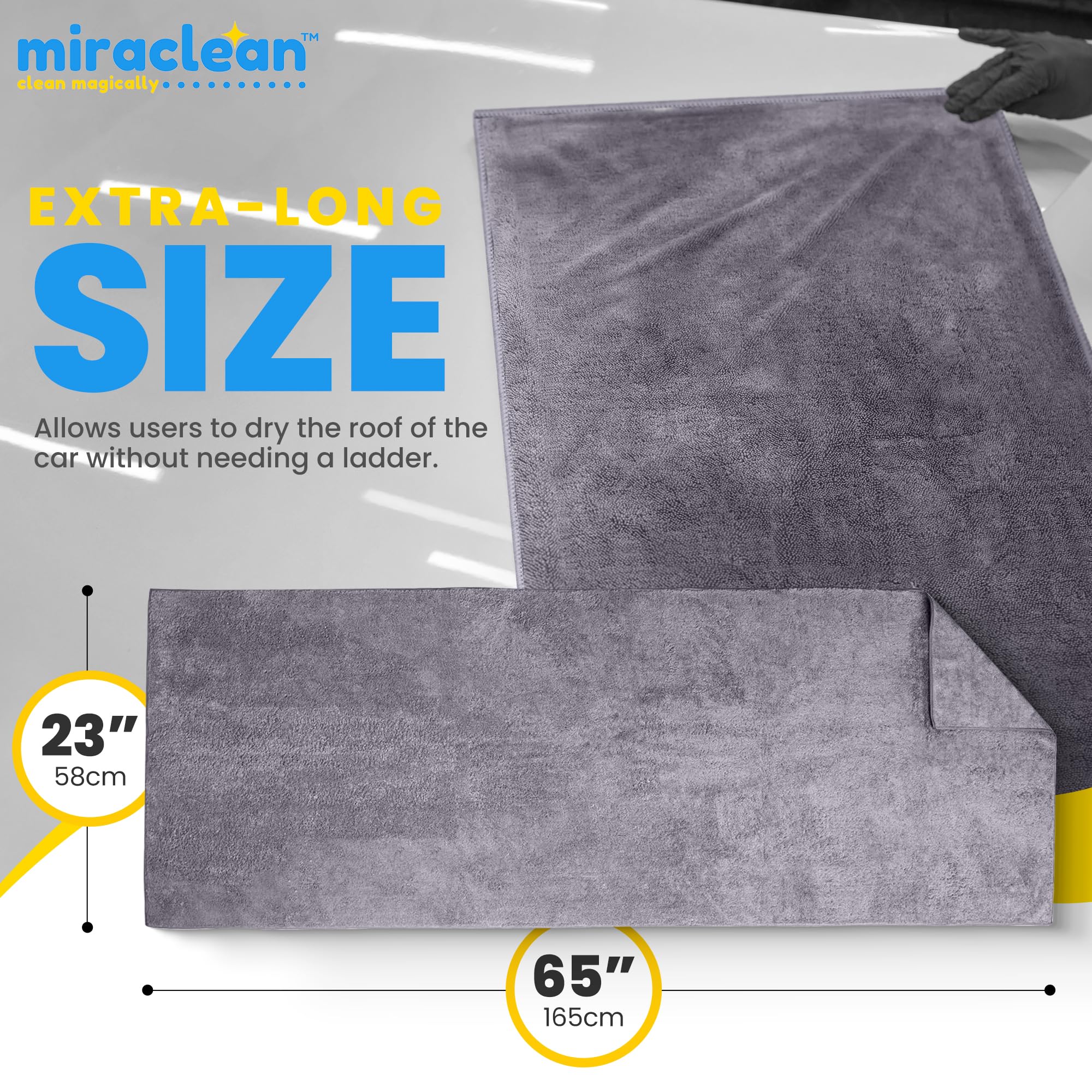 Massive coverage: Our huge-sized microfiber towel measures an impressive 65 x 23 inches, providing unparalleled coverage for large surfaces. This extra-large microfiber cloth allows you to dry cars, boats, or extensive areas with fewer passes, saving time and effort in your cleaning routine.