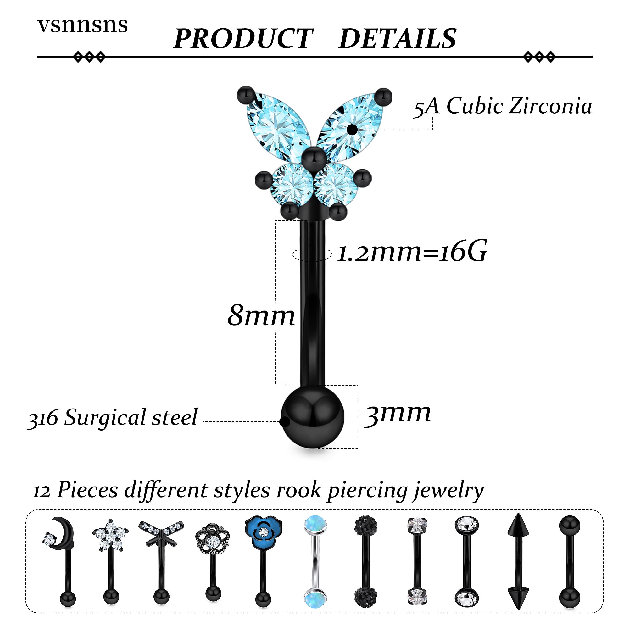 [SUITABLE FOR USE]: These Eyebrow Piercing Jewelry Can Be Used For Eyebrow Rings, Eyebrow Jewelry, Eyebrow Piercing, Rook Piercing Jewelry, Daith Piercing Jewelry, Vertical Labret Lip Jewelry, Small Belly Button Ring, Rook Earrings, Daith Earrings.
