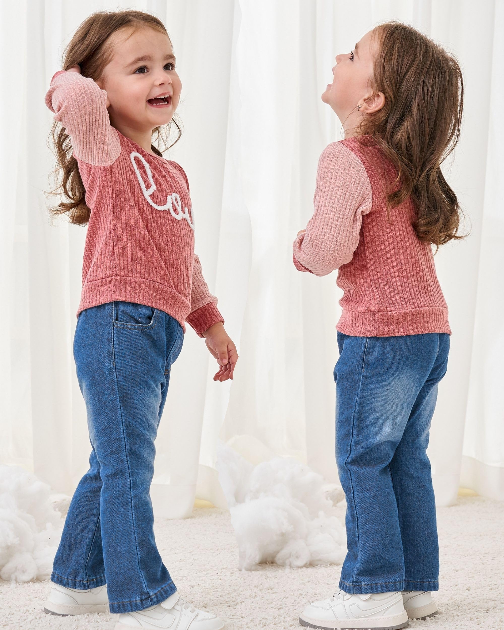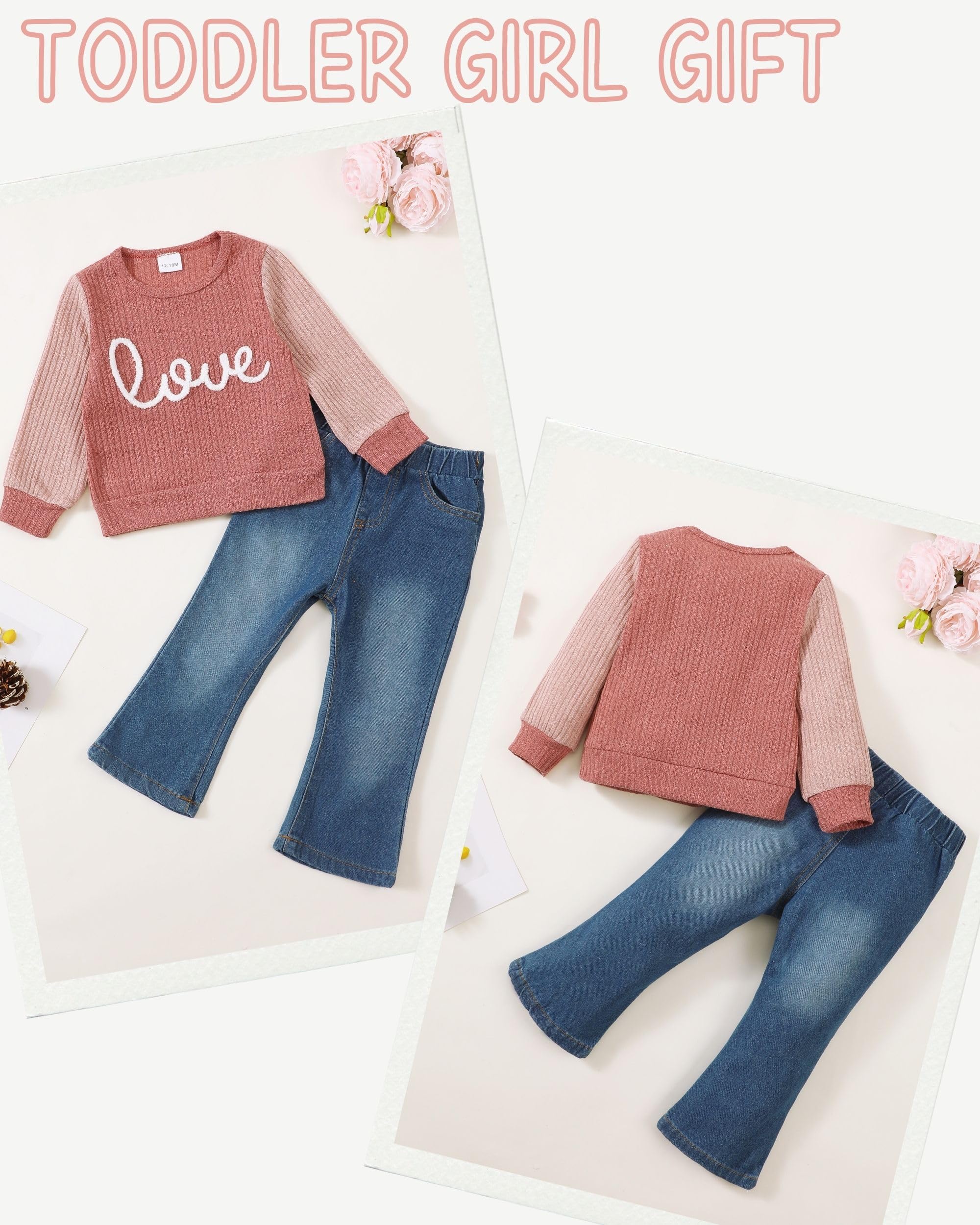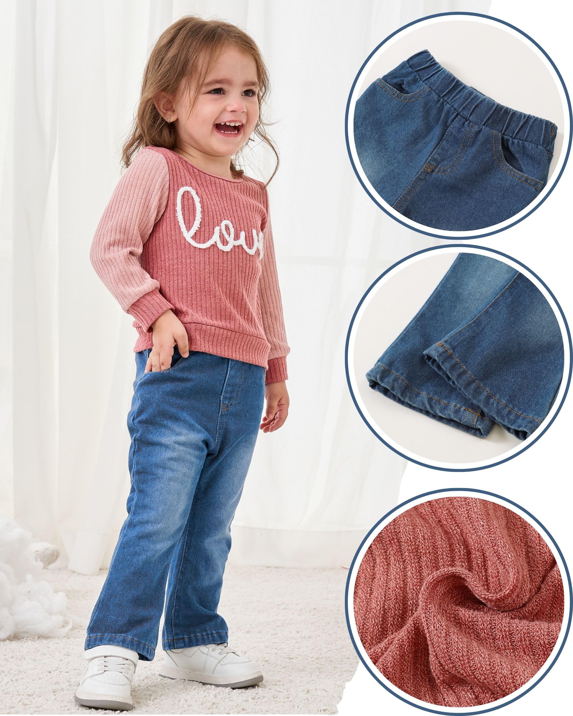 Fashion Design: Our baby girl outfits is designed with a crew-neck long sleeve letter “love” print shirts and stylish wide leg jeans that will make your little girls look so cute.
