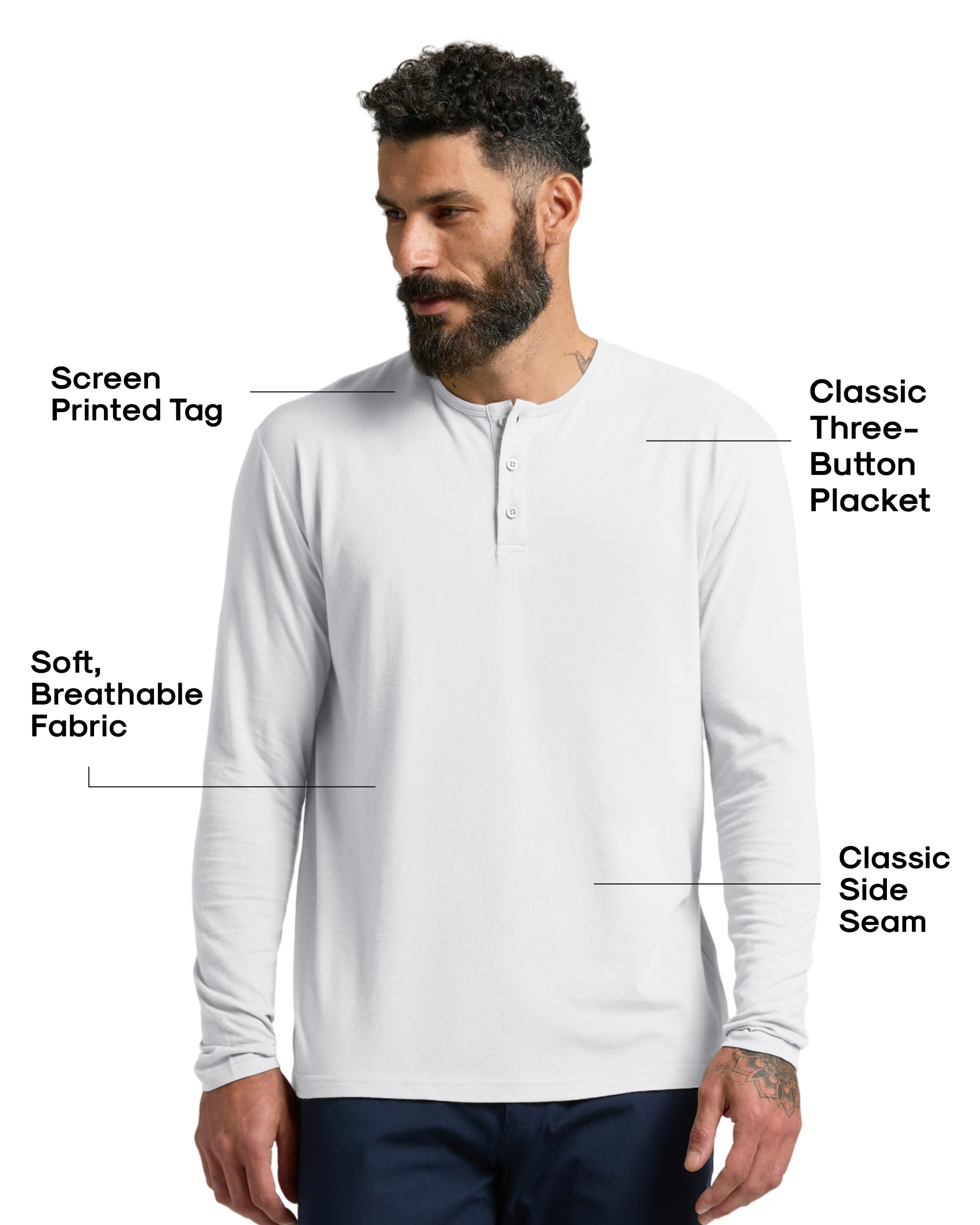 ALL-DAY COMFORT, TAG-FREE: Long sleeve men's t-shirts built for easy wear from workdays to weekends. Our classic crew and mens henley shirts have tagless prints with classic side seams that keep shape with minimal shrinkage (about 5% on low heat).