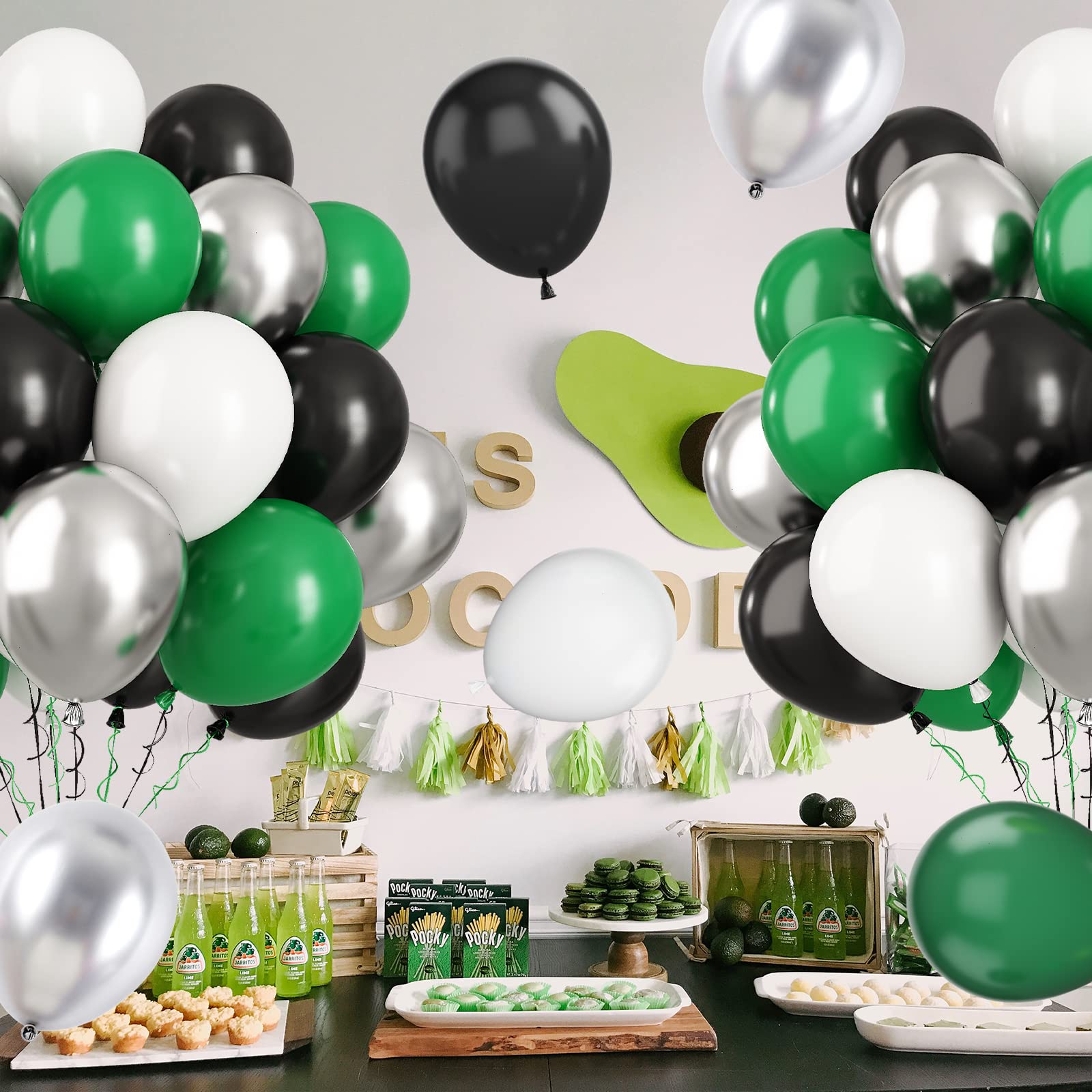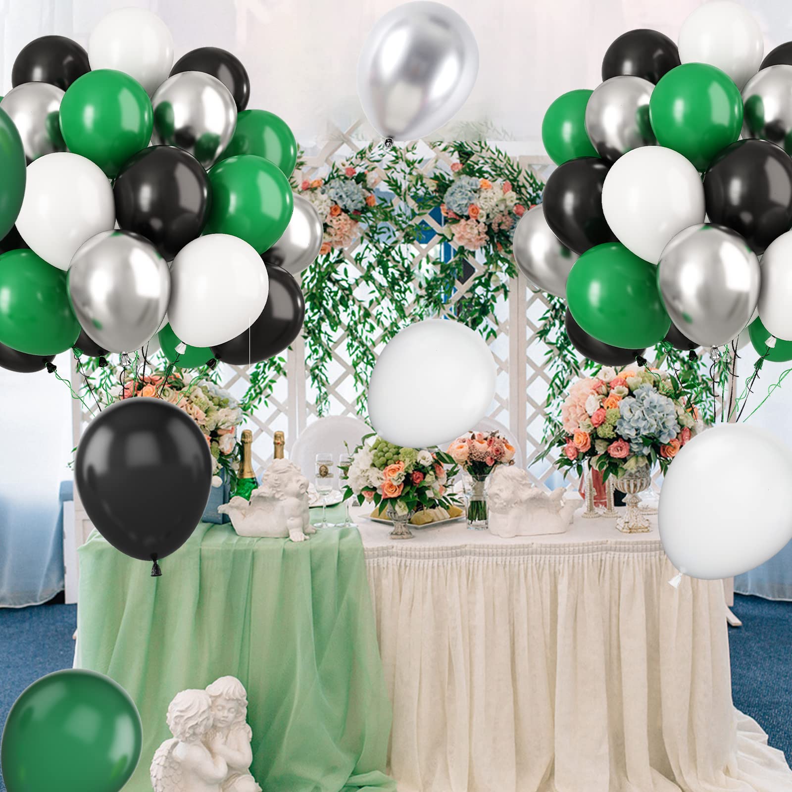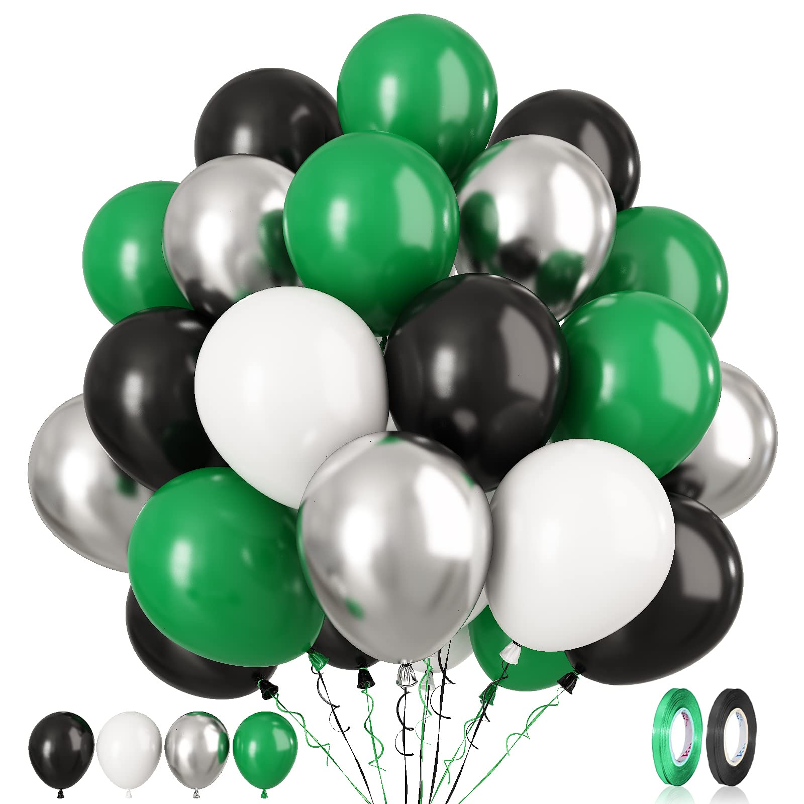 Premium Quality: The green black and silver balloons are made of good quality latex material. The party balloons are easily filled with helium or air. Our black green metallic silver balloons are long-lasting, safe to be used for both kids and adults.
