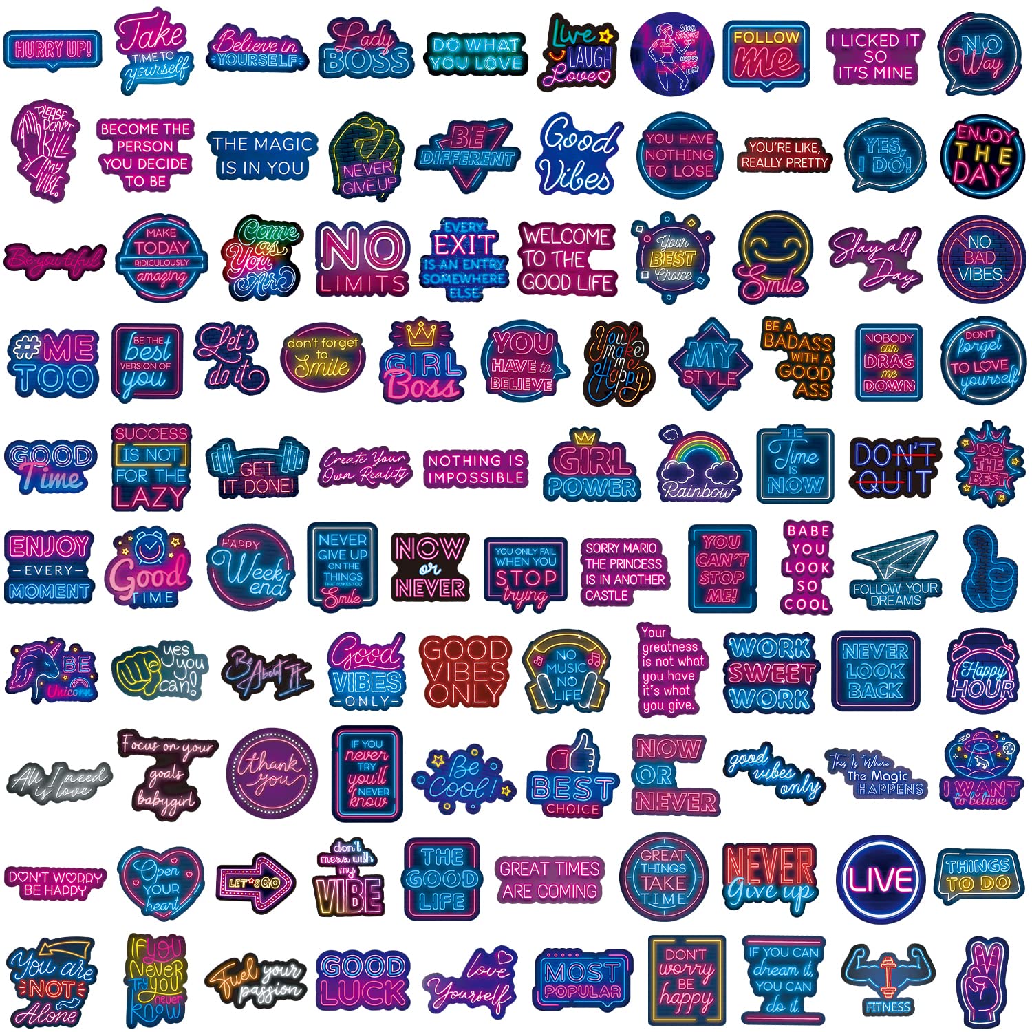 Unique Style: You will receive 100 sheets cool neon motivational stickers. Fun phrases stickers great for self motivation or encouraging others. Vibrant inspirational stickers bring a positive attitude to the surfaces of your living things