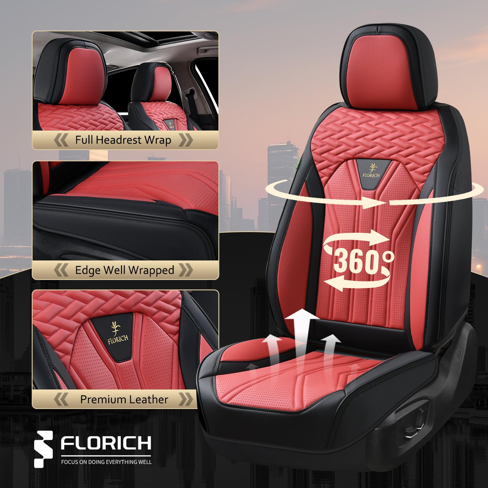 【SAFE & CONVENIENT】Florich driver seat covers full envelope design with reserved airbag exit to ensure the airbag can function in case of emergency. Reserved seat belt exit, will not affect the use of child safety seats, while the front seat back has pockets for the things you want to put.