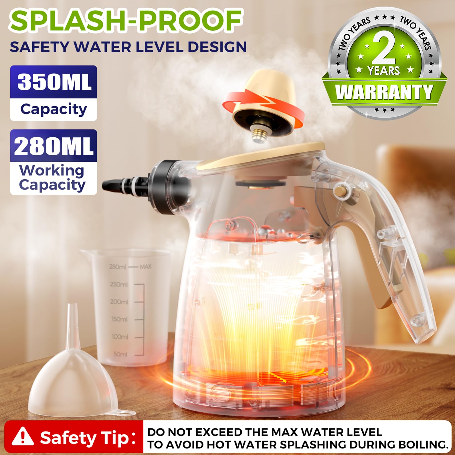 【Powerful Hot Steam】This handheld steam cleaner boasts 1050 watts of power and heats up in just 3 minutes. Its large 350ml water tank delivers 7-10 minutes of intense 230°F steam. (Recommended water fill: 280ml). Its rapid heating and powerful steam make it the perfect choice for any cleaning job. It effortlessly tackles grease, bathroom grime, car interiors, sofas, floors, as well as reducing dust, providing a versatile, all-in-one cleaning solution for your home