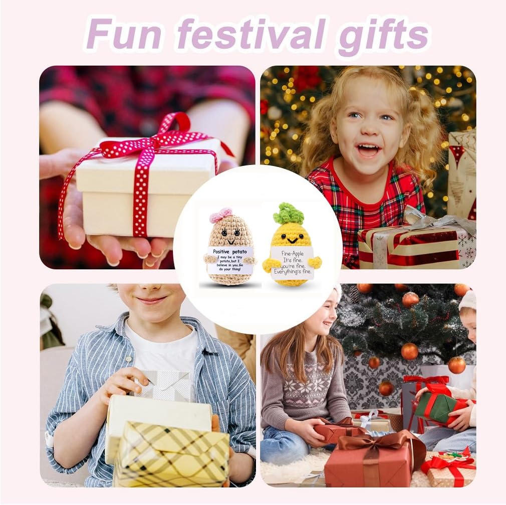 Funny Product: Our funny positive knitted doll is very cute, and the words in the card are inspirational. You will happier if you see the doll when you are happy, while it will make you happy when youβre upset. The positive potato doll will accompany forever.