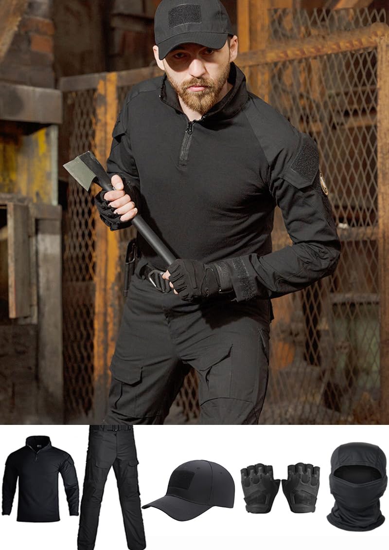 【Package Contains】Combat Como Pants + Shirt + Cap + Gloves + Balaclava Mask. A set of tactical gear.