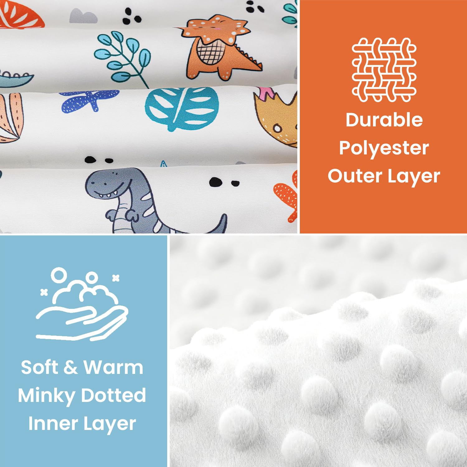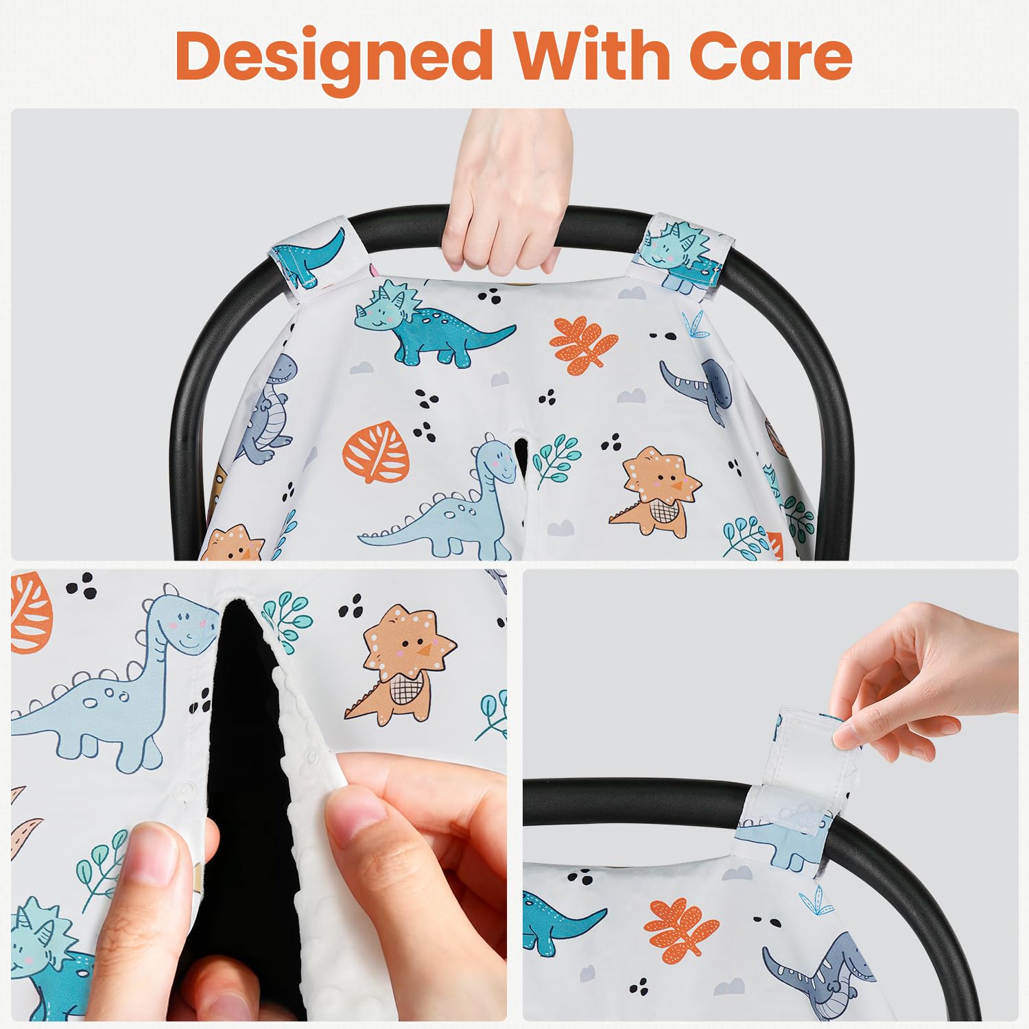 DOUBLE LAYER FABRIC: Our baby car seat canopy is designed with double-layer fabrics. The outside is durable polyester with various cute patterns; the inside is warm minky that has a soft short pile. It is made for all seasons, is not too thick or too thin, protects your baby from the cold, and provides shade in the summer.
