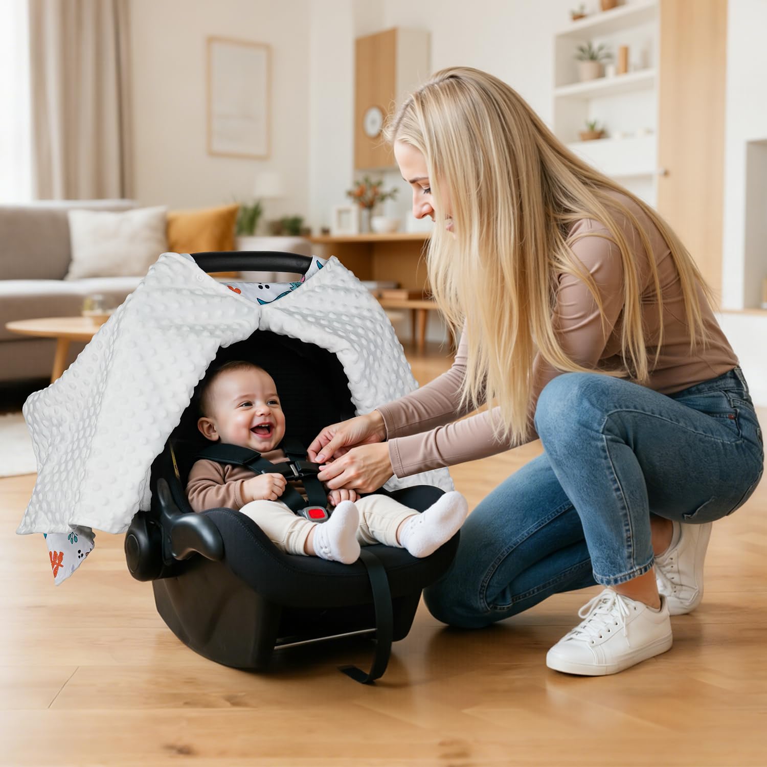 PEEKABOO OPENING DESIGN: The peekaboo opening makes checking on your baby less disruptive, unlike blankets that may fall off or carseat canopies that need to be flipped or loudly unzipped. You can adjust the opening in order to modify light, visibility and temperature.