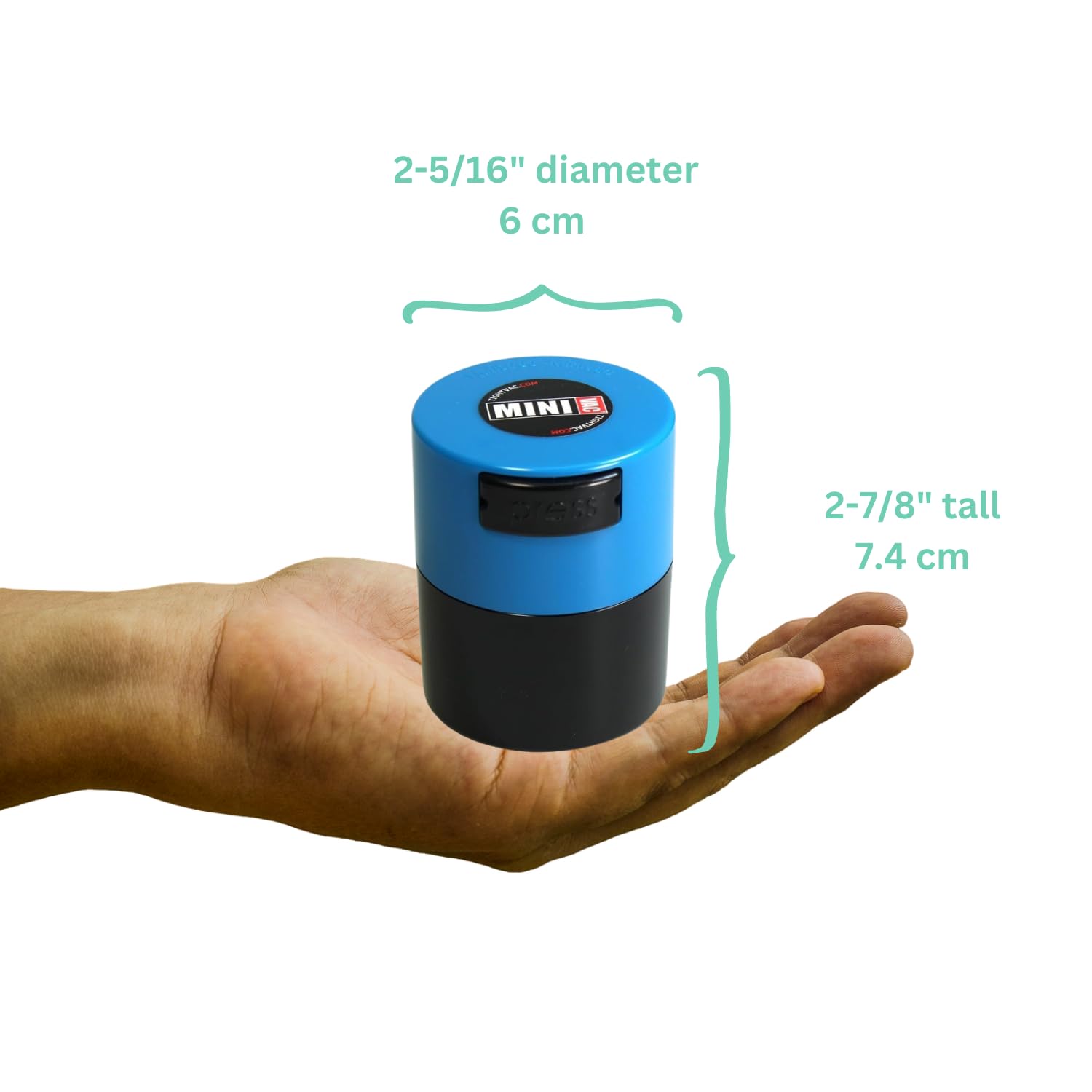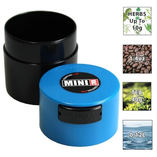 The single dose solution Minivac holds 40g of Coffee or Tea and makes the best Tea sniffer. This multiuse Vac easily fits into smaller backpacks and purses. The ultimate storage container for herbs & spices, nuts, vitamins, homeopathic medicine and keeps dry goods 3X longer. Terrific for small items such as make up, sewing kits, buttons, beads, pins, paper clips, coins, bracelets, rings, jewelry (won’t tarnish), gaskets, o-rings, and hundreds of other things. Ladies it’s crush resistant - Purse friendly. Store your Minivac conveniently on the counter top, in the pantry, the fridge or freezer. Our Vacs save you money and guarantee fresher for longer food storage.
