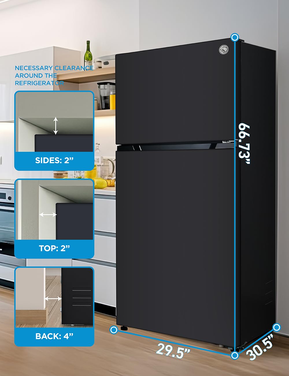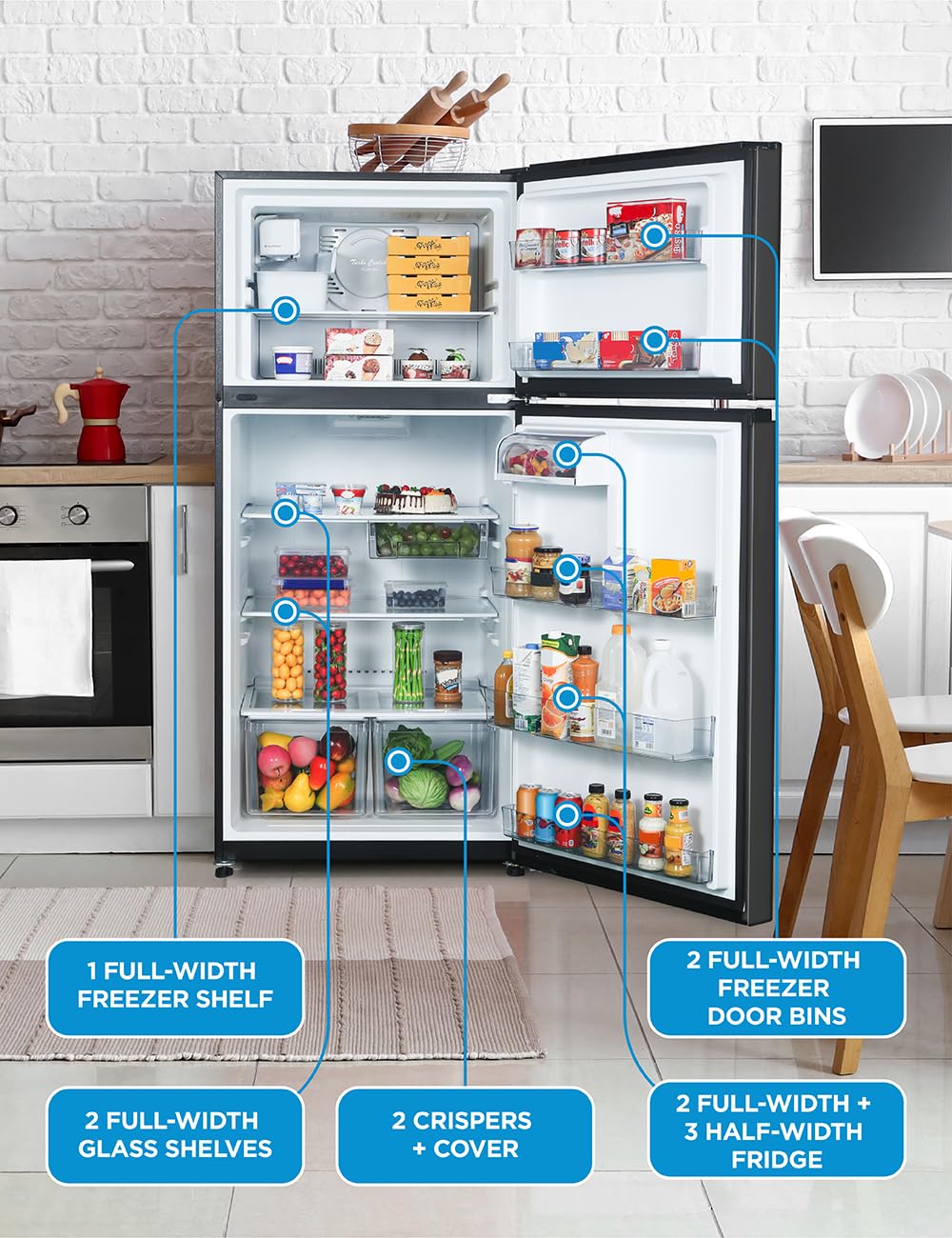 Generous 18 Cu. Ft. Capacity: Our full size refrigerator with freezer offers organized storage for fresh and frozen foods. Top freezer refrigerator fits perfectly in kitchens in homes and apartments