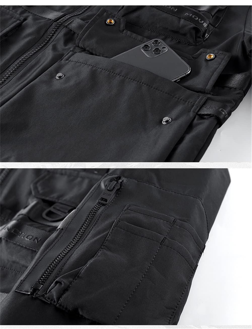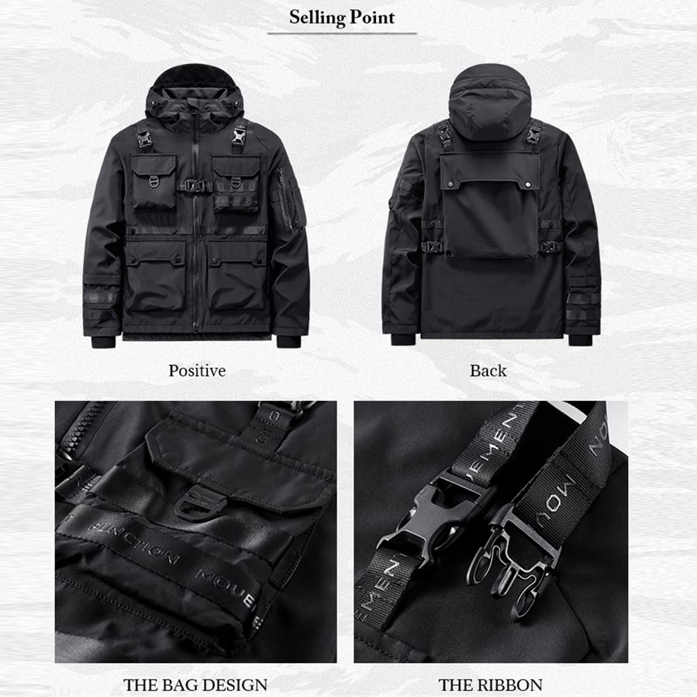 Description Men's Cargo Jacket Tactics Techwear Windbreaker Men Streetwear Jacket Coat Autumn Function Hooded Jackets Male Outerwear