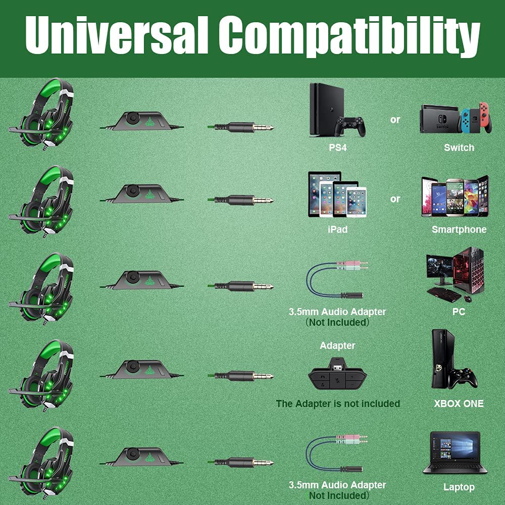 【Great Humanized Design】Superior comfortable and good air permeability protein over-ear pads, muti-points headbeam, acord with human body engineering specification can reduce hearing impairment and heat sweat.Skin friendly leather material for a longer period of wearing. Glaring LED lights desigend on the earcups to highlight game atmosphere.