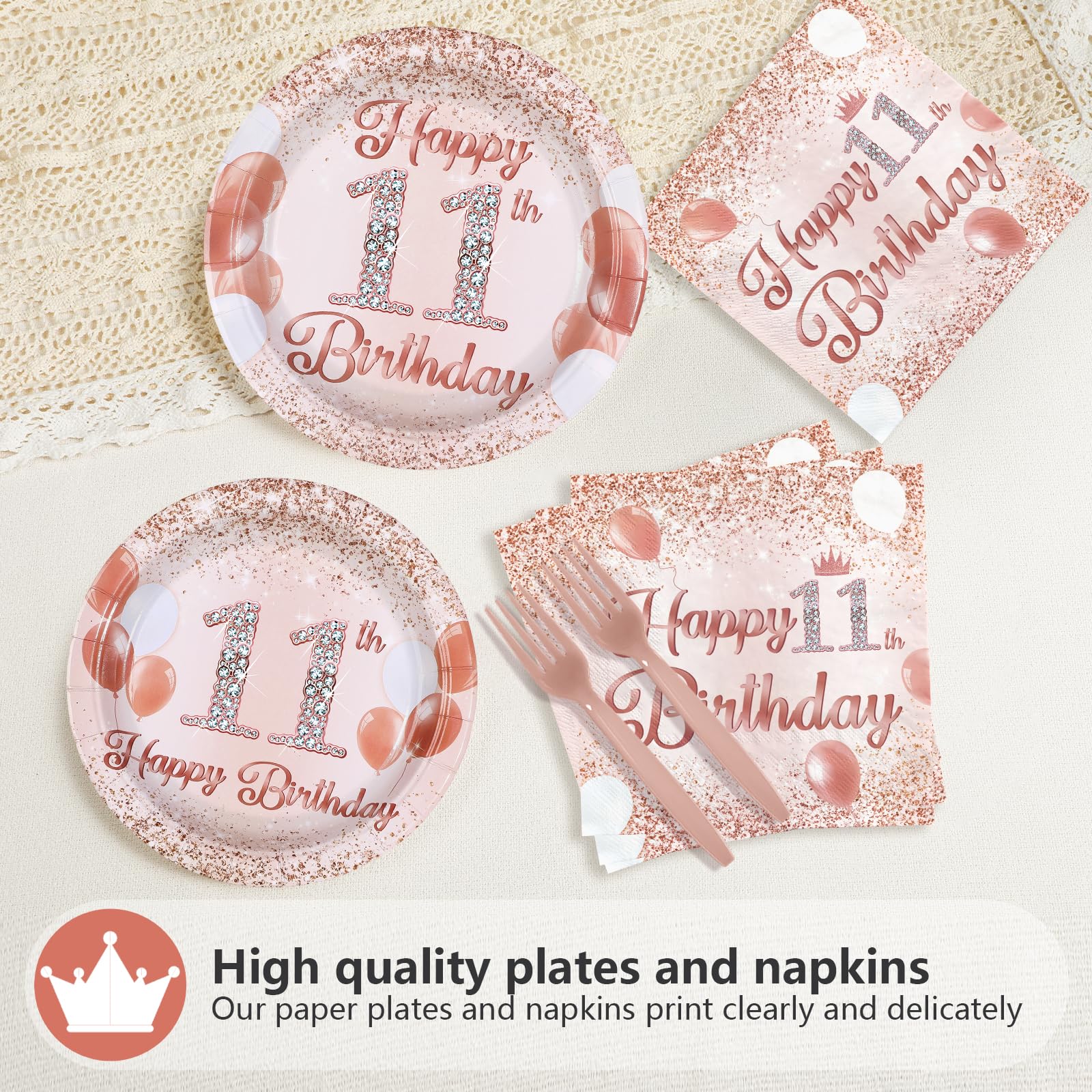 Wide application: Create unforgettable memories with our 11th birthday decorations for girls! The 11th birthday Tableware is great for 11th birthday party, prom and coming of age ceremony. Suitable for pink 11th birthday party, rose gold 11th birthday party, girls birthday party. Decorate your home, room, or outdoors on this special day, create a wonderful atmosphere, and have a happy and memorable birthday