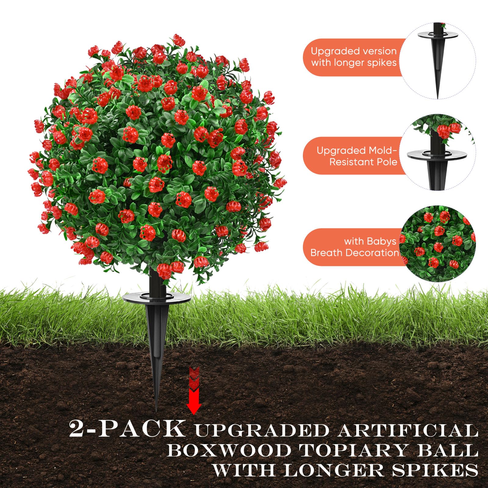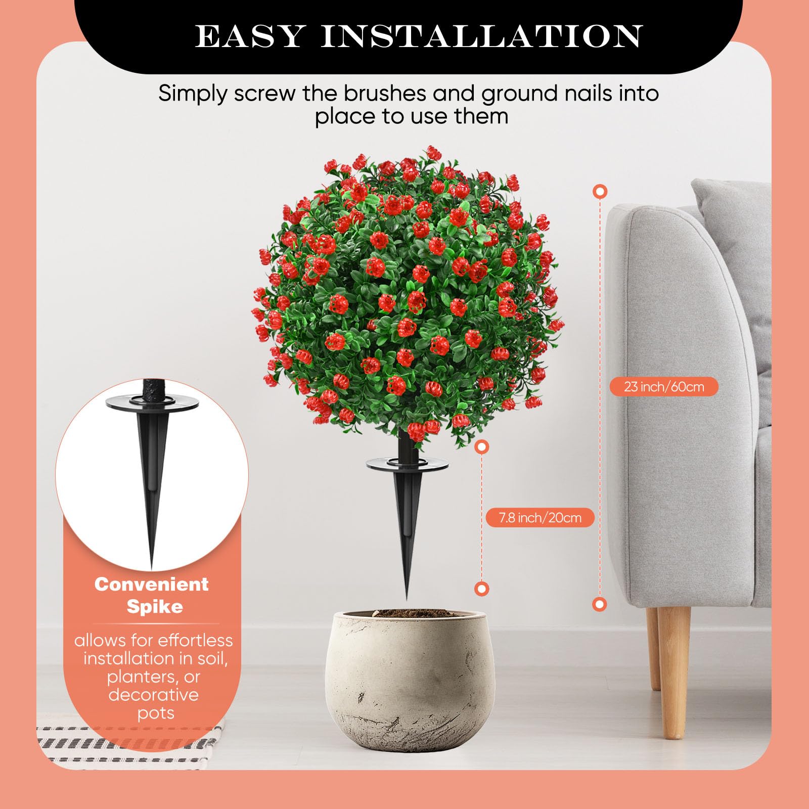 【Upgraded Deep Spike – Stronger Hold in Any Weather】Now featuring a newly upgraded 7.8-inch tapered spike, our artificial shrubs stay firmly anchored in soil, planters, or gravel—even in strong wind or heavy rain. The conical design ensures a secure, weather-resistant hold, making these faux bushes perfect for any outdoor setting, all year long.