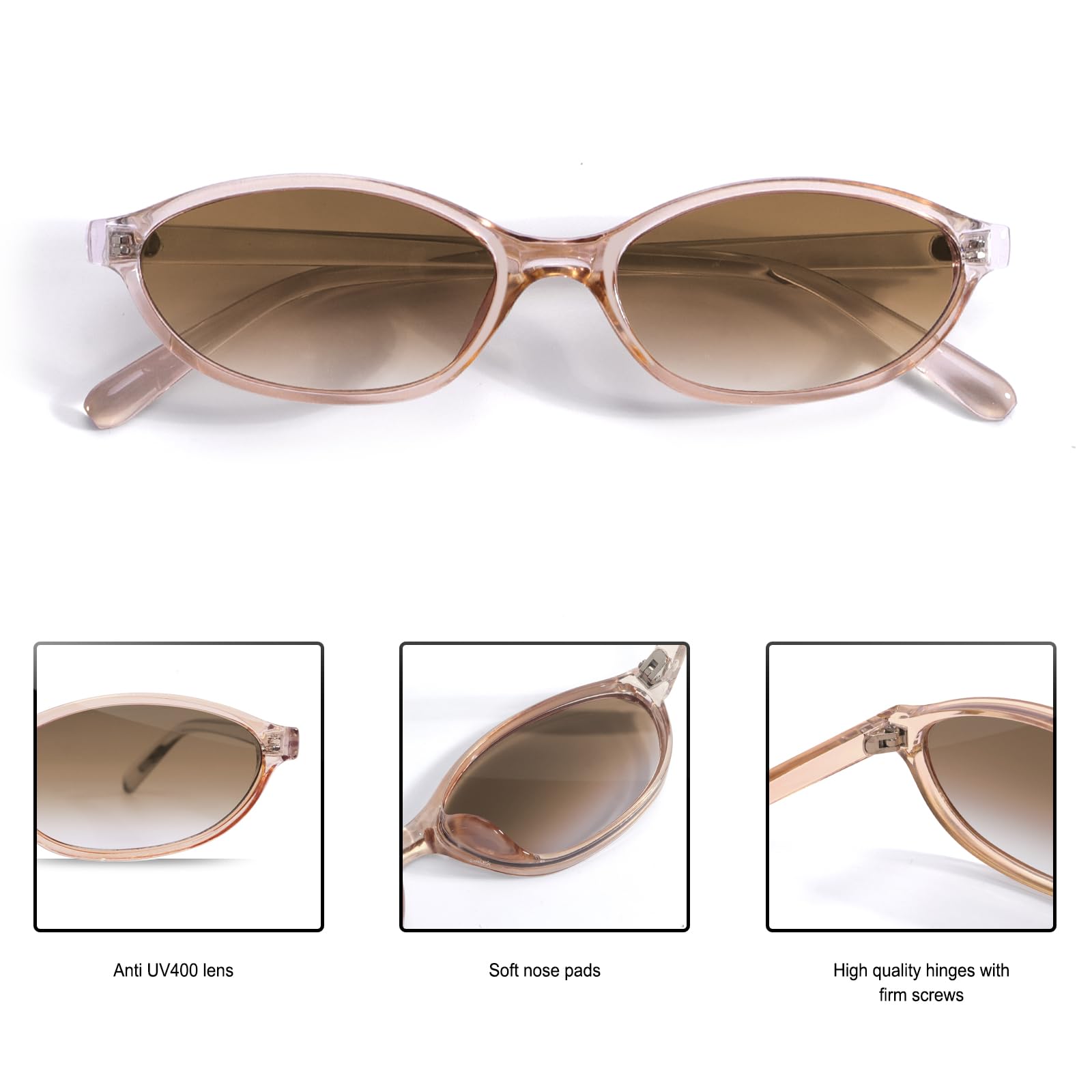 This vintage y2k oval frame is particularly suitable for heart-shaped, square, small faces, but also suits every other face shape, because the 90s sunglasses is a real all-rounder. Plastic frames combine durability and are comfortable to wear, very snug fit on the ears and nose