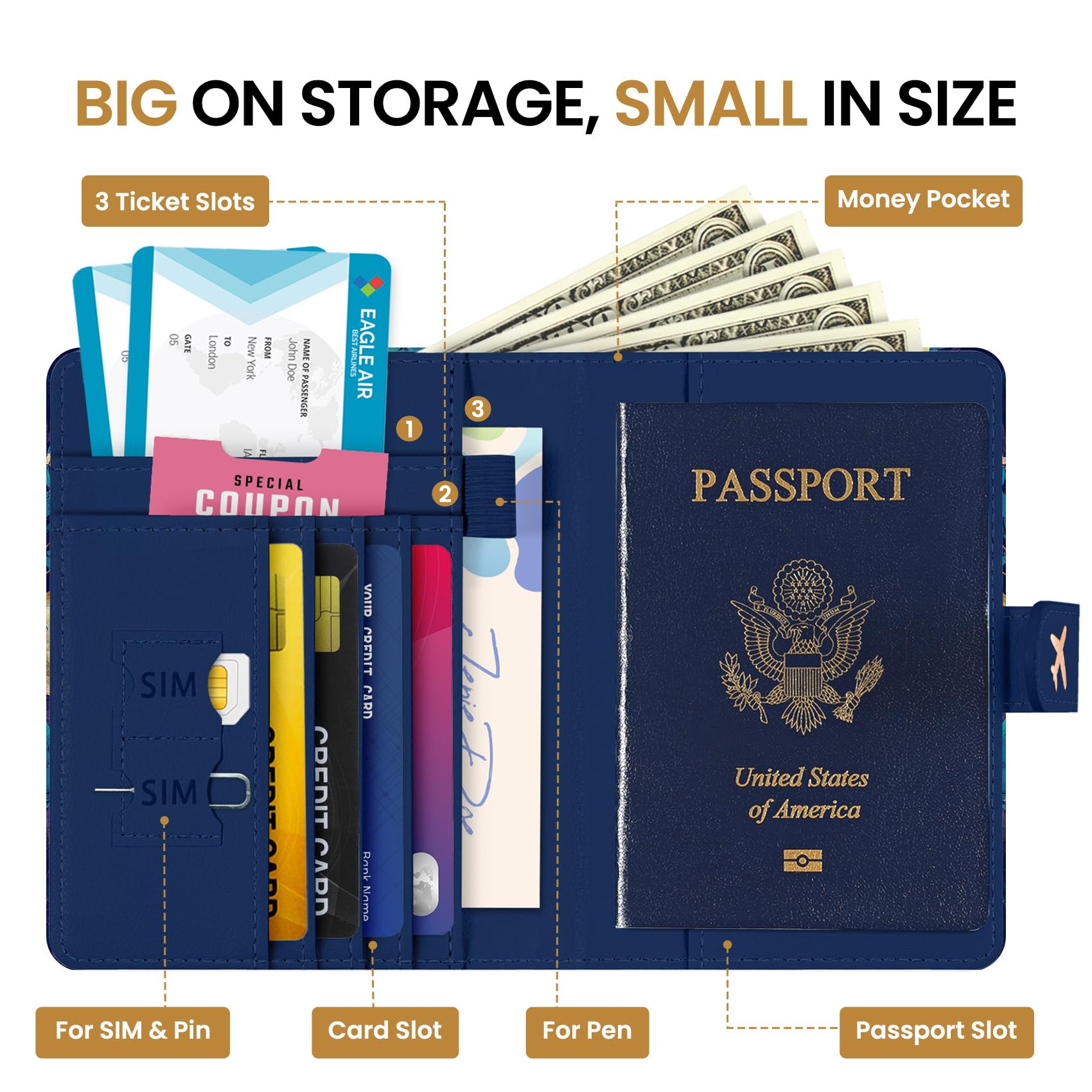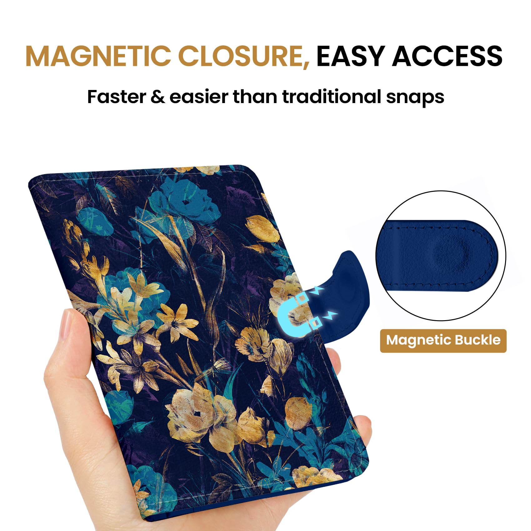Instant Access & Magnetic Closure: Access your travel essentials in a snap. Our passport holder features a smooth magnetic closure for quick entry and secure storage - no more fumbling with zippers or snaps. Designed for effortless travel.