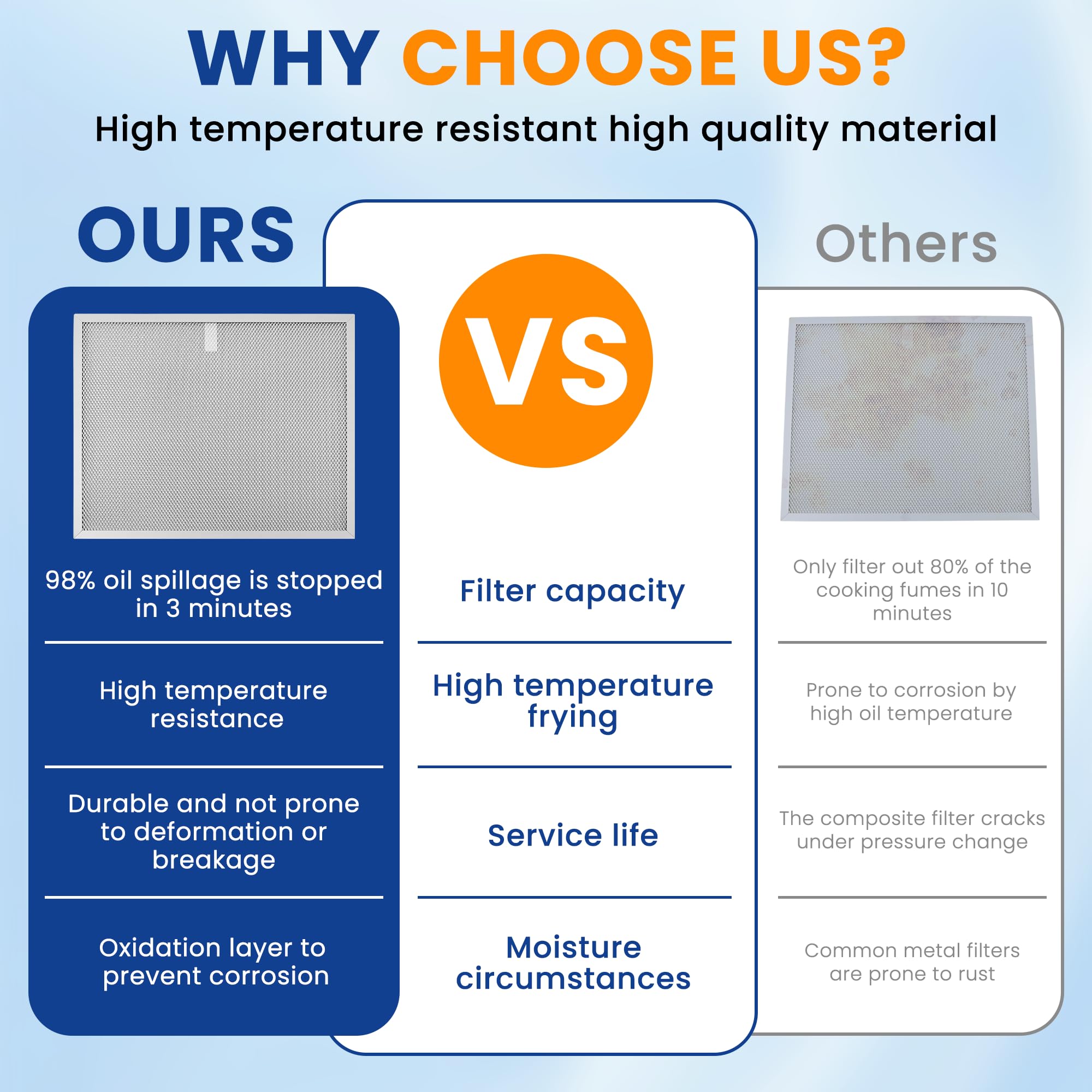 【Upgraded Premium Aluminium】: The upgraded BPS1FA30 aluminium mesh filter is made of superior durable aluminium and has a thicker frame that is resistant to breakage. The new filter has denser mesh for greater durability and performance, and the multi-layer mesh is more efficient at trapping and retaining grease and oil than standard filters