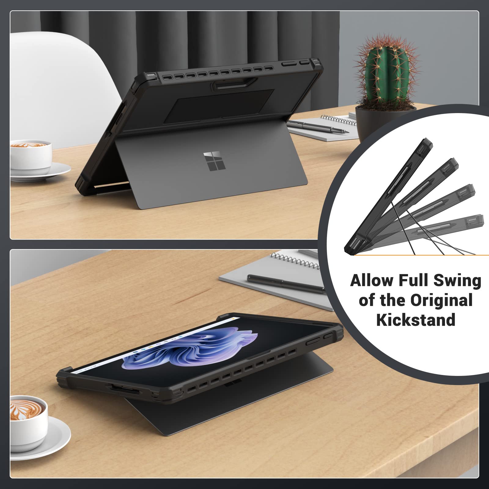 FRIENDLY TO USE WITH SCREEN PROTECTOR: The raised design around the tablet screen protects it efficiently from accidental dropping and breaking. It's also convenient for applying different kinds of screen protector on Surface Pro 10 and Pro 9 screen.