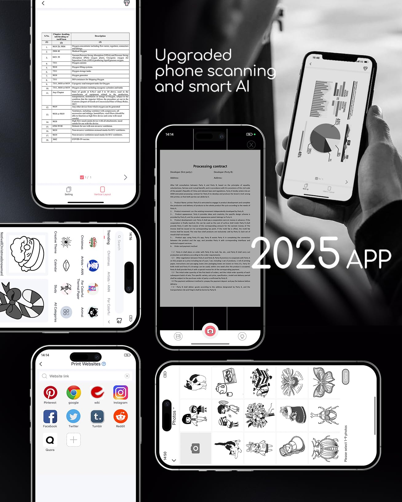 Portable Printers Wireless for Travel [Compact & Space-saving]: The portable printer Weighs only 1.5lb and is small in size. This inkless portable printer fits easily into a backpack or briefcase! Ideal for on-the-go printing during business travel, in car or truck, small office, construction site, school and home use. You can print documents, contracts, invoices, receipts, recipes, lists and boarding passes anytime, anywhere