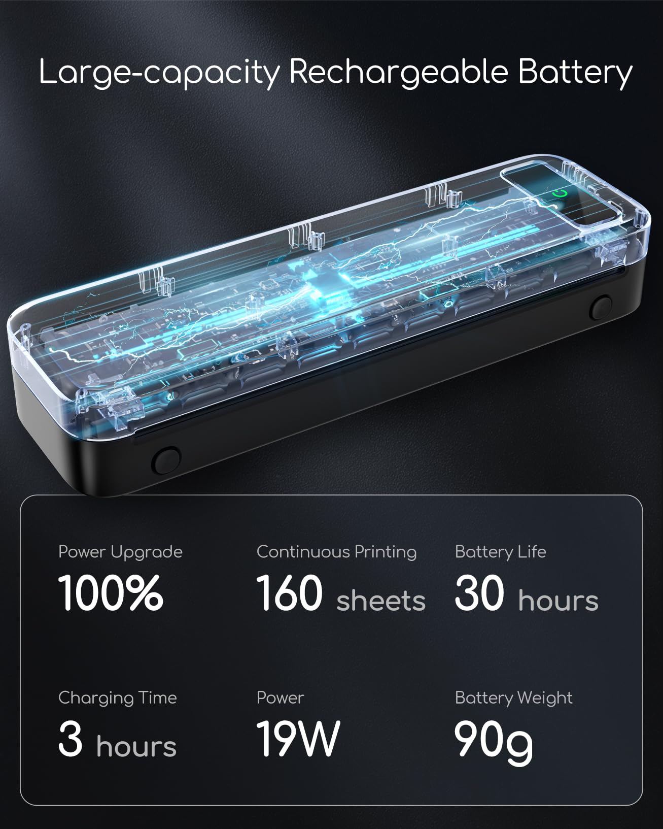 Mobile Printer [High Quality Printing]: The compact printer designed for people who work outside. A wireless inkless portable printer good for mobile notaries, truck drivers, business travelers, office workers, teachers and students.Note: Charging with 5V 2A. Don't use the charger that output above 5V