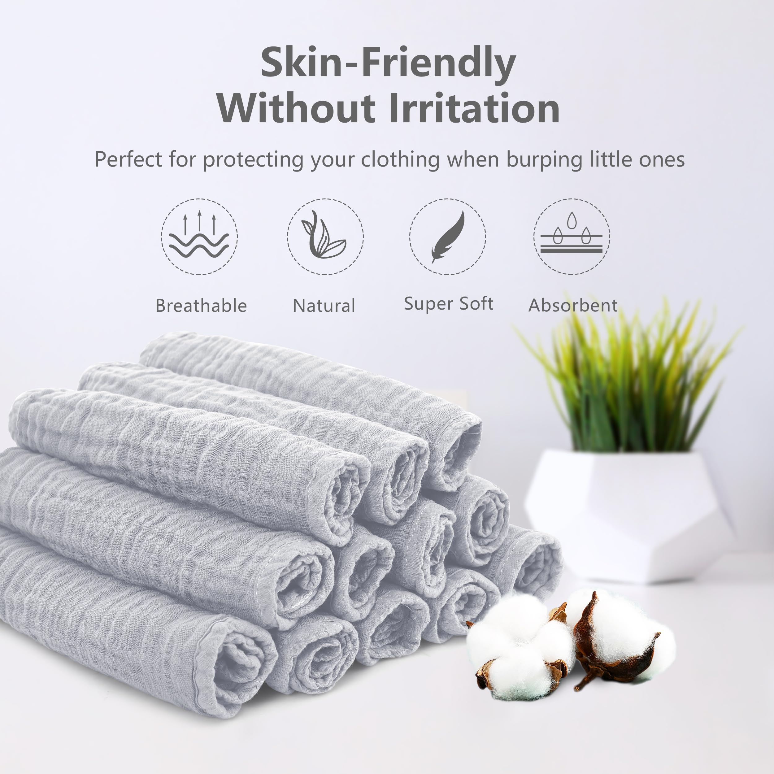 PACKAGE CONTENT - 12 pieces muslin burp cloths, 20 x 10 inches. They are also lightweight and breathable, making them ideal for use in any season.