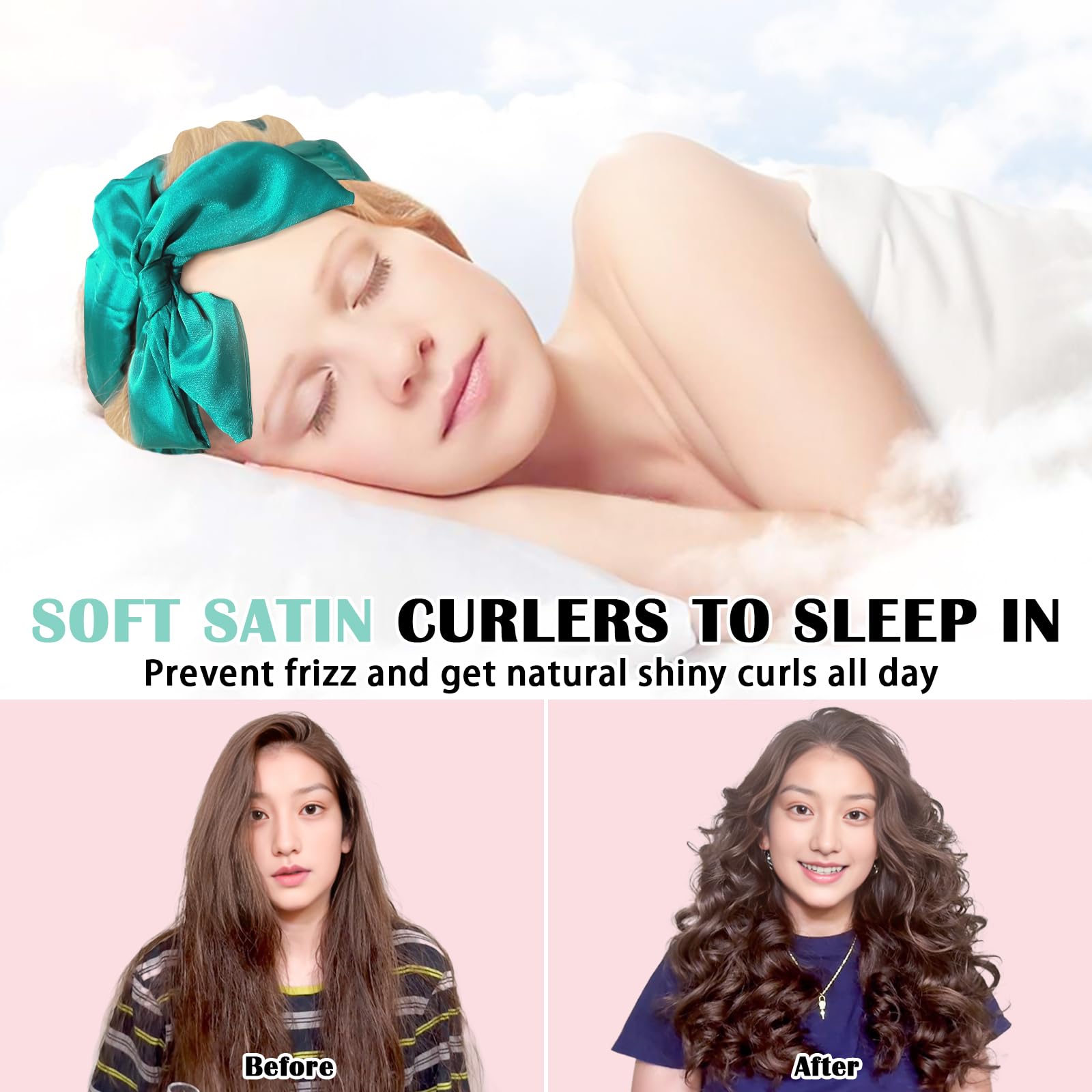 Soft Satin Material: This no heat overnight hair curlers features a satin material on the outside and coral fleece material on the inside. It is a very soft hair rollers comfortable to sleep in, non-slip texture that is odorless and does not harm your hair. Additionally, it doesn't create any rubbing noises when you curl your hair and lay on your bed. Wake up with straight hair that transforms into beautiful, natural waves for big volume