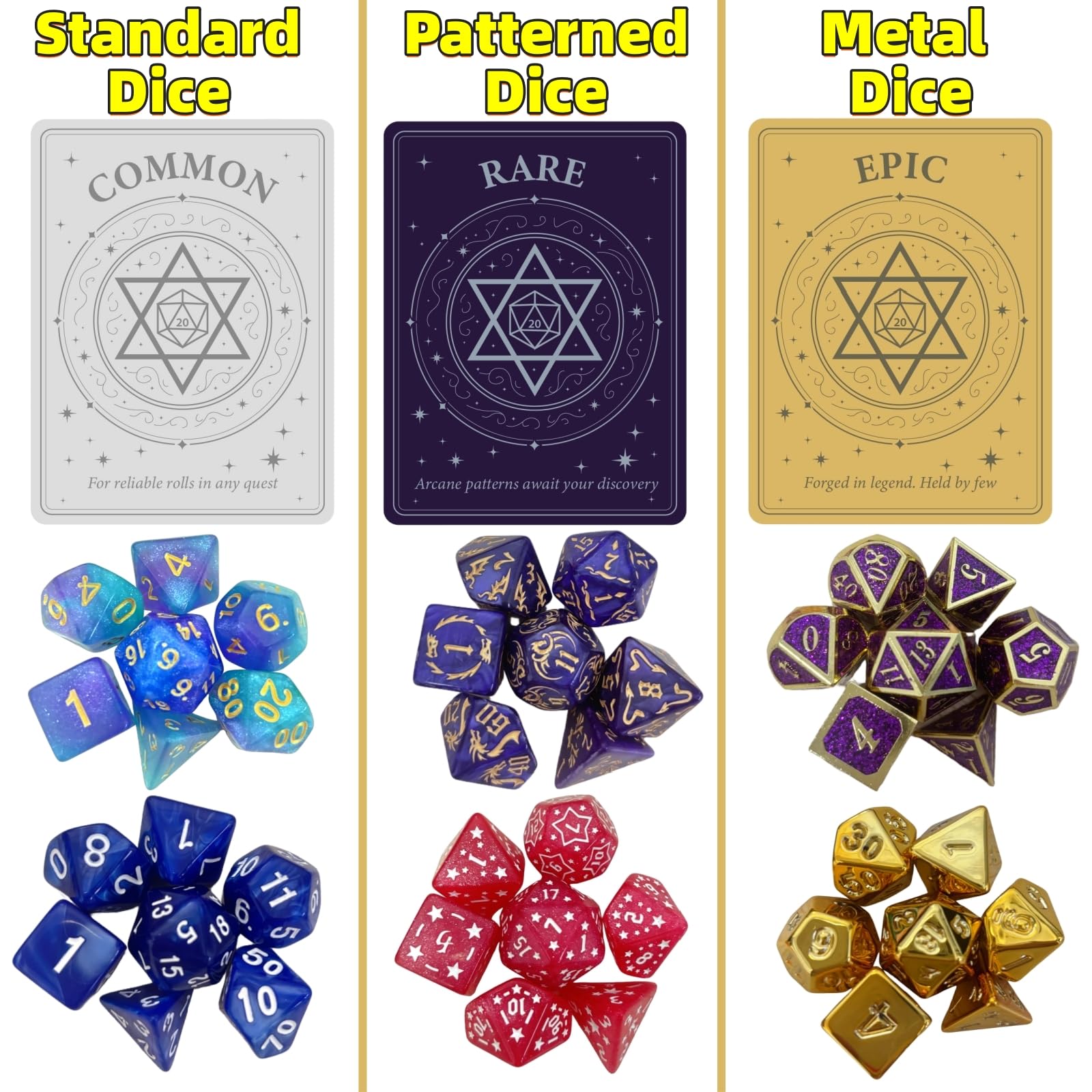 Premium Dice Quality – From standard plastic to dazzling patterned finishes to heavy metal dice, each set is designed for readability, and immersive game play.