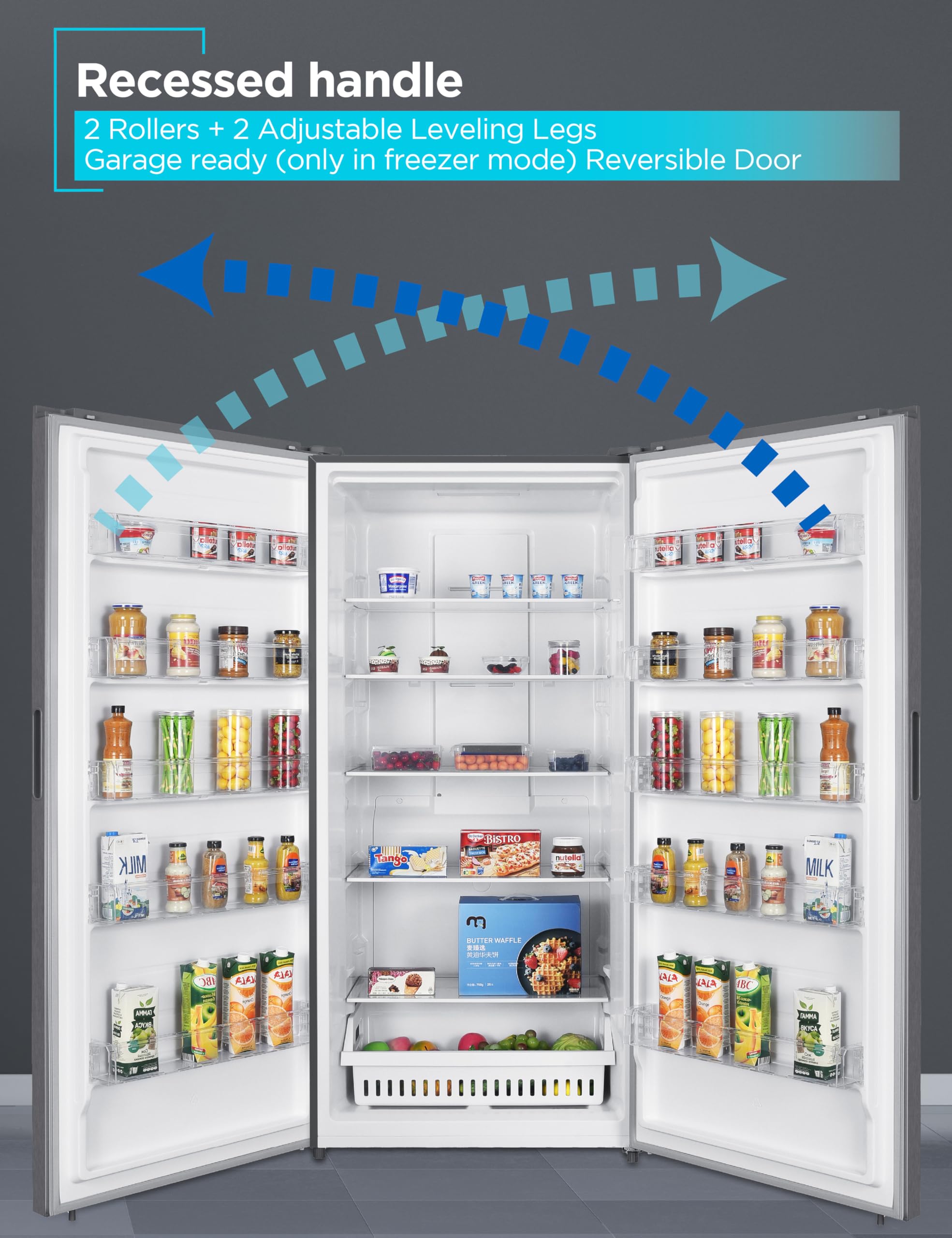 Convertible Design: This versatile 21.2 cu. ft. stand up freezer effortlessly transitions to a full size refrigerator, offering adaptable freezer storage and food storage solutions for various needs