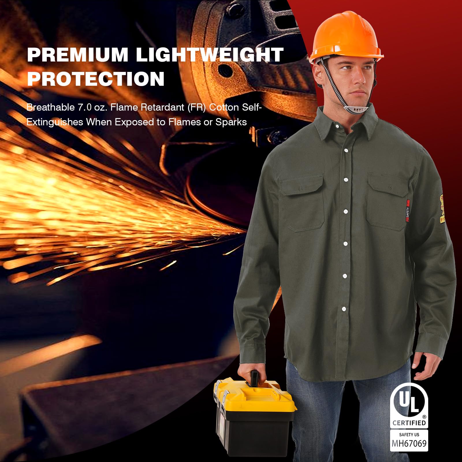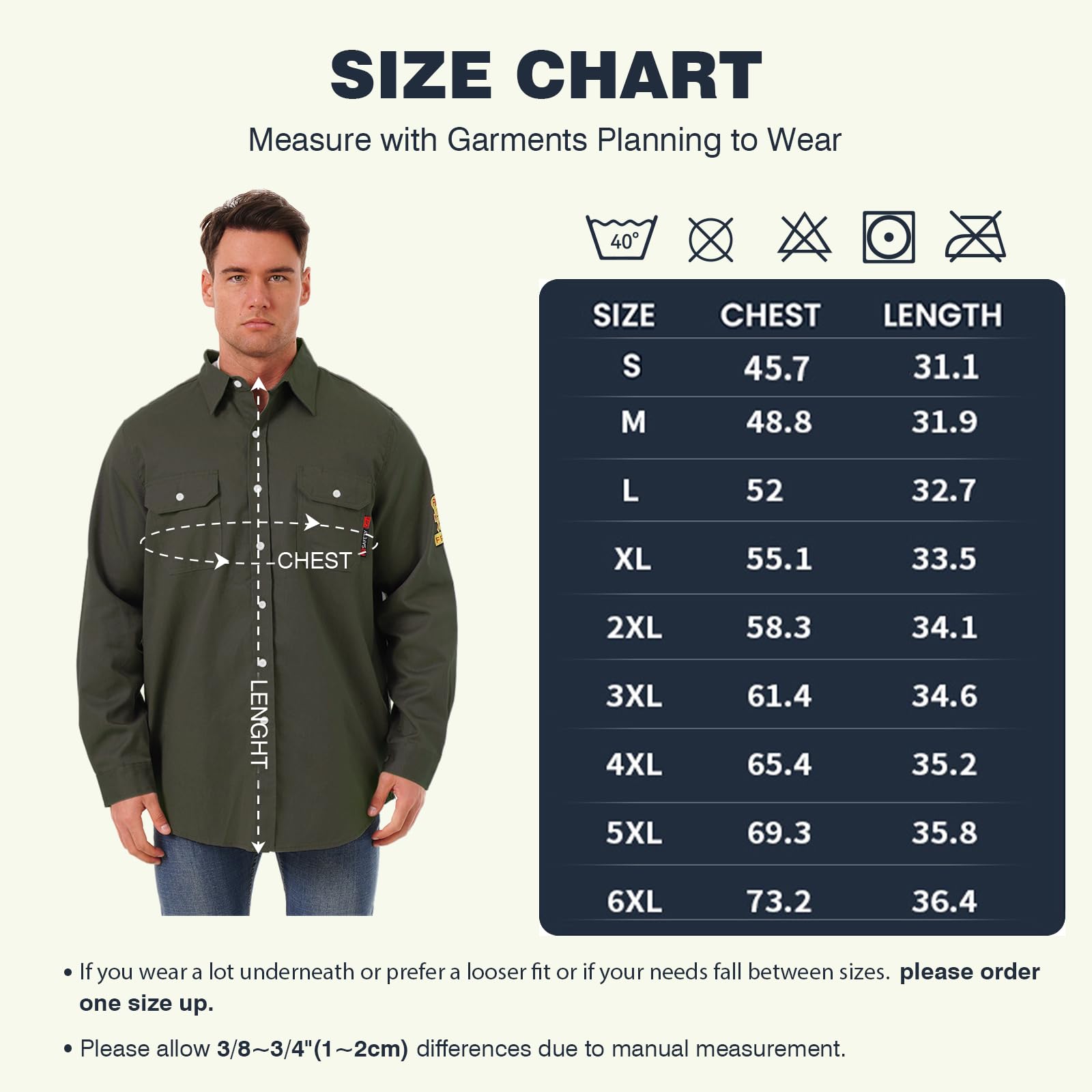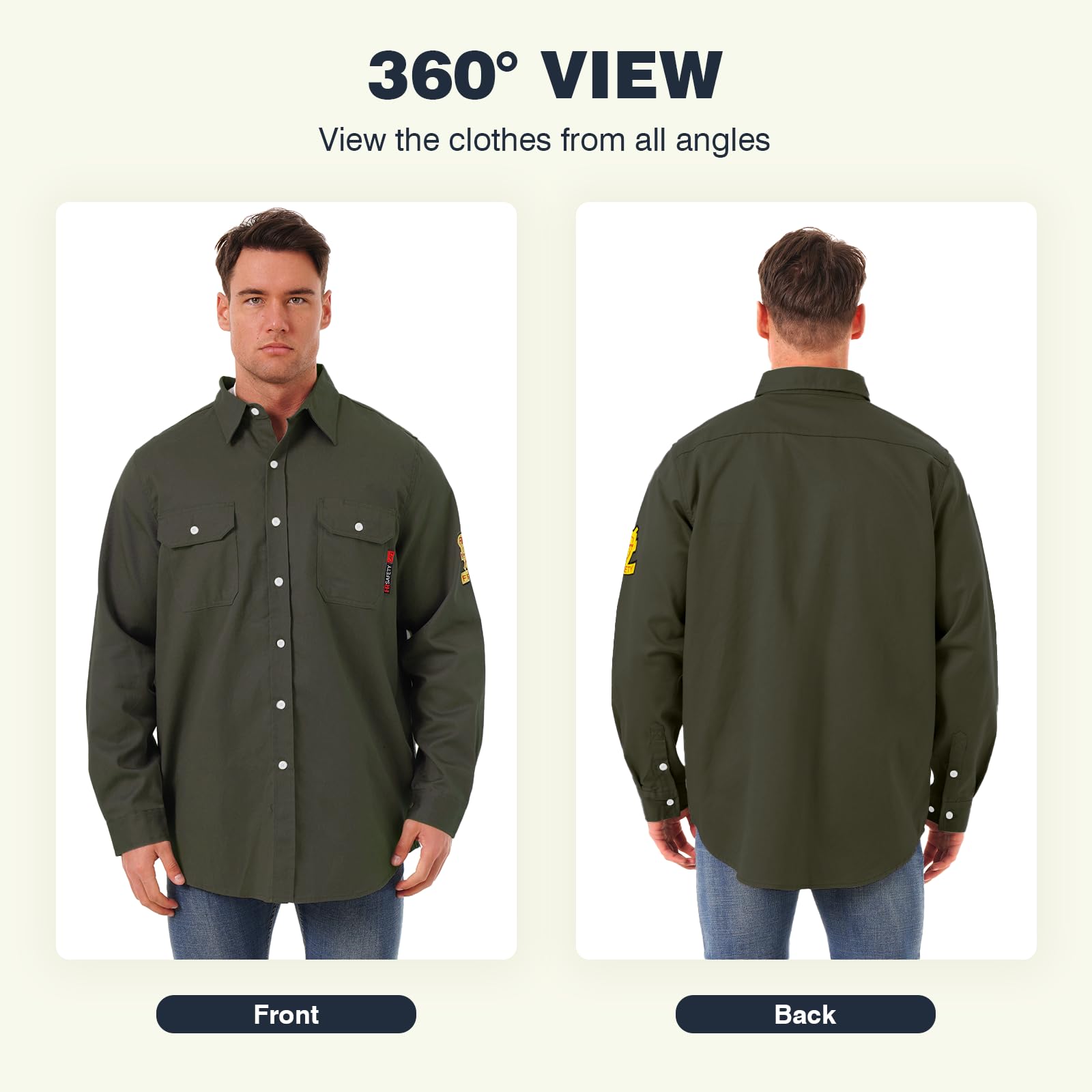 【Tips❗❗❗ Flame retardant shirts ≠ fireproof clothing】: Our flame retardant shirts are different in nature from fireproof clothing. Flame retardant clothing is added to the surface of the clothing flame retardant or the use of flame retardant fibers (such as aramid), when in contact with fire will slow down the burning speed or self-extinguishing from the fire, but can not completely prevent combustion, will still be charred, suitable for short-term sparks splash occasions